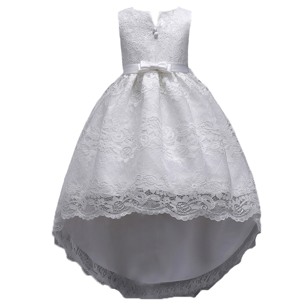 Flower Girls Wedding Bridesmaid Lace Dress Kids Princess High Low Birthday Party