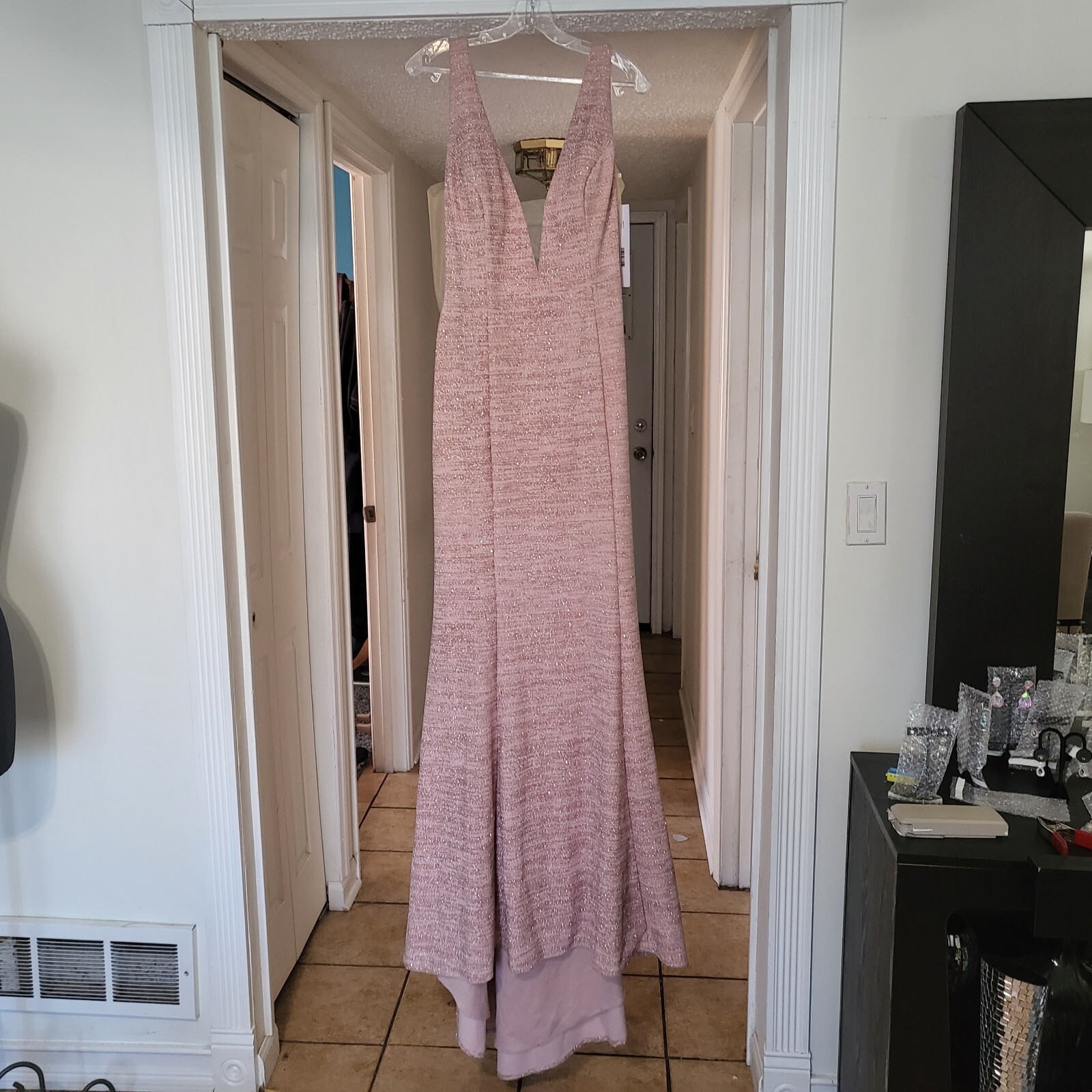 как выглядит Jovani Blush Sleeveless V-Neck Glitter Jersey Gown New with Tags Size 14 фото