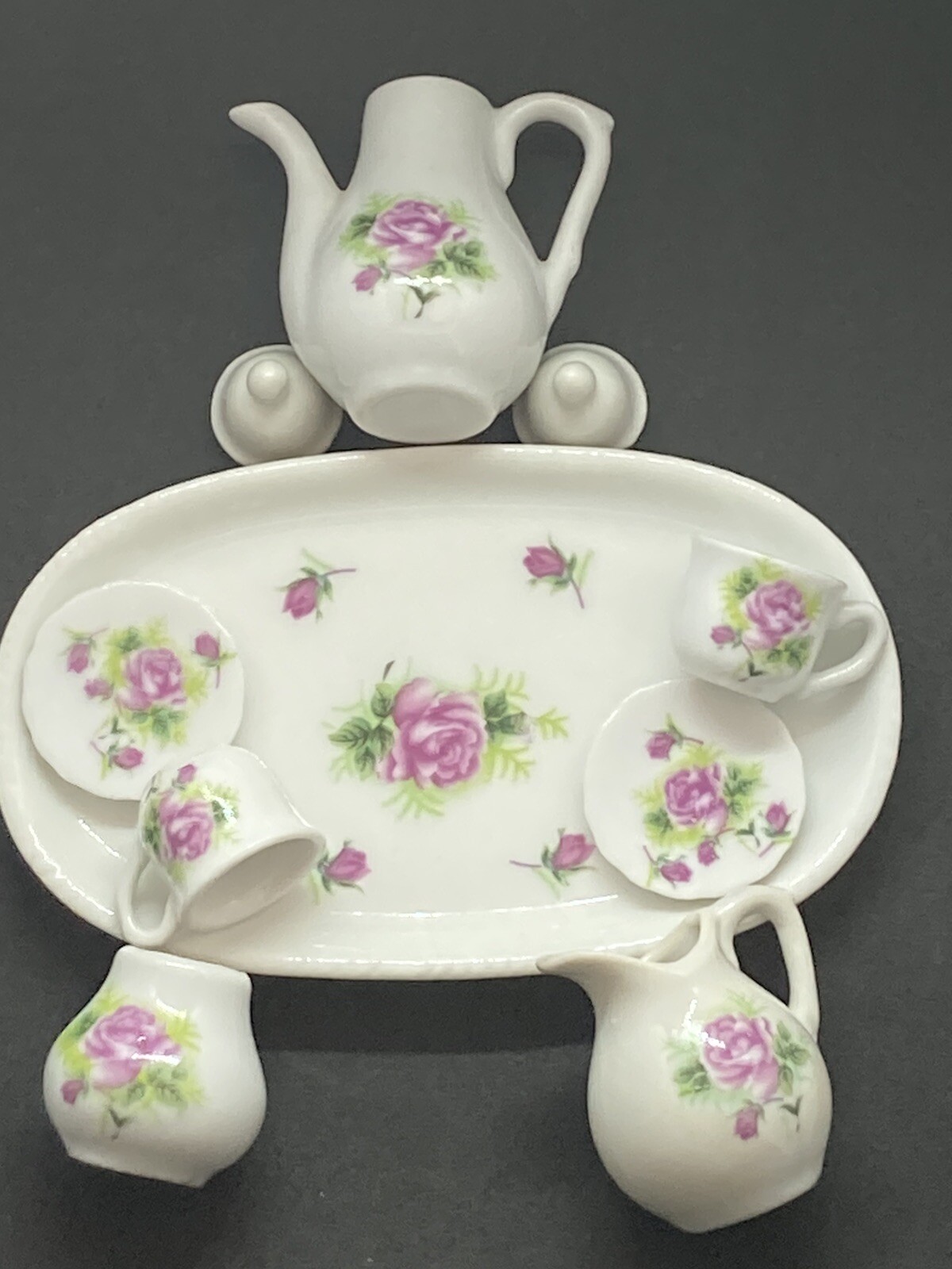 • Vintage 10 Pc Rose And Buds Royal Norfolk Miniature Porcelain Tea Set