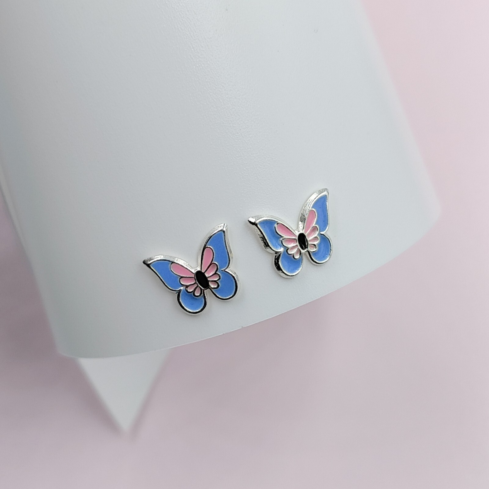 925 Sterling Silver Tiny Earrings Cute Butterfly Ear Studs Enamel Girls Earrings