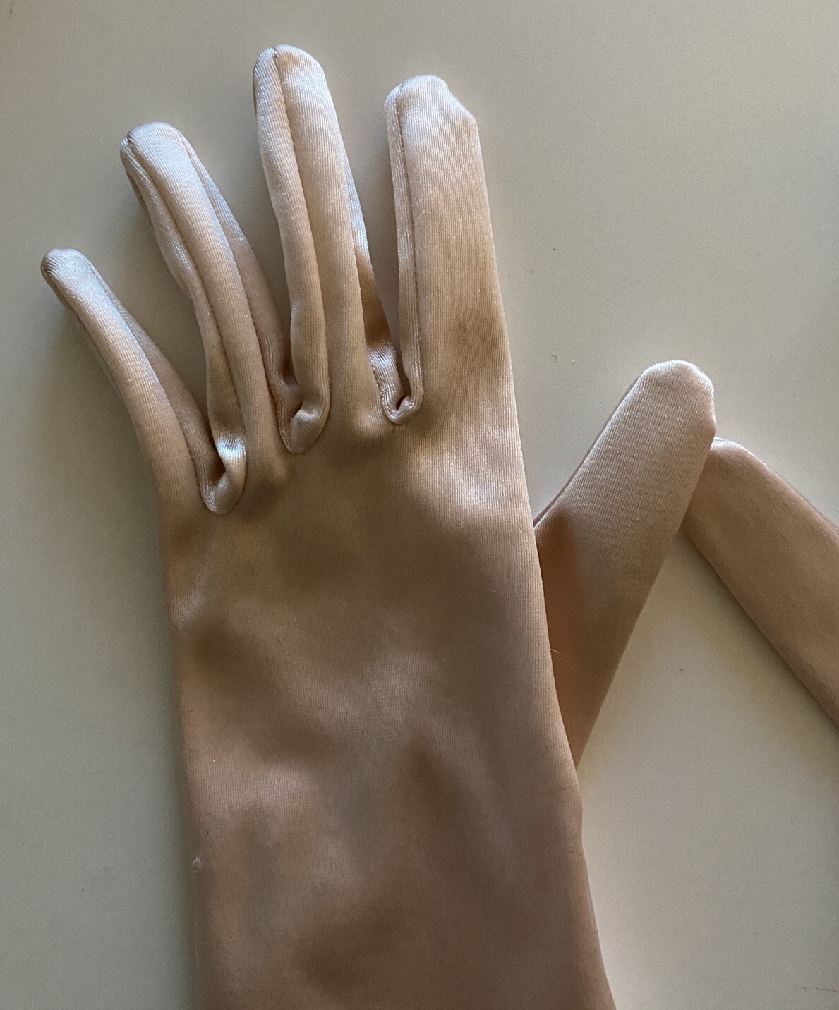 Satin Hand Gloves Vintage Kid Cream Rose Gold Tint Short Fancy 8 X 3 Inches Long