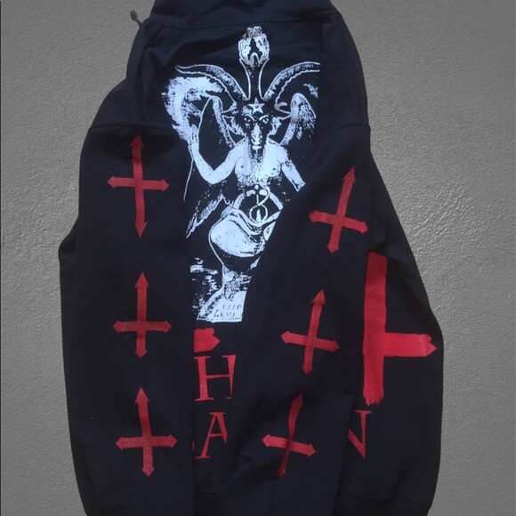 Baphomet Hoodie Inverted Crosses S to XL Sizes Hail Satan Zip Up Solve Et Coagul