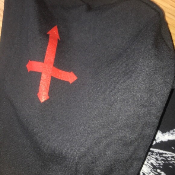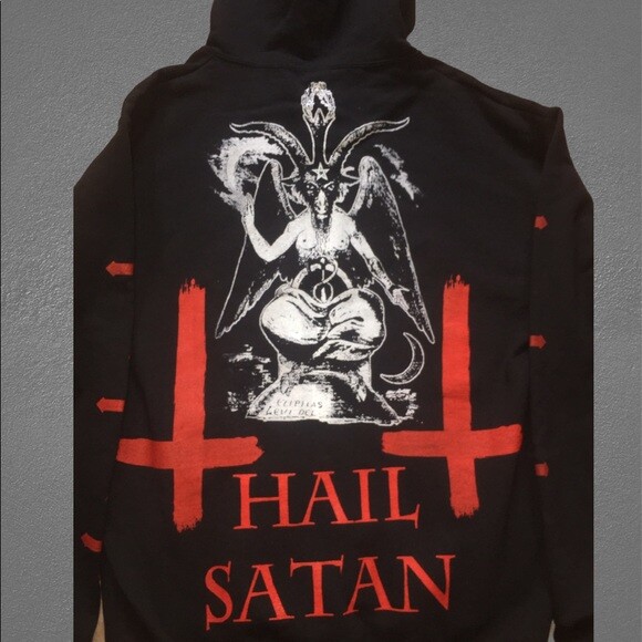 как выглядит Baphomet Hoodie Inverted Crosses S to XL Sizes Hail Satan Zip Up Solve Et Coagul фото