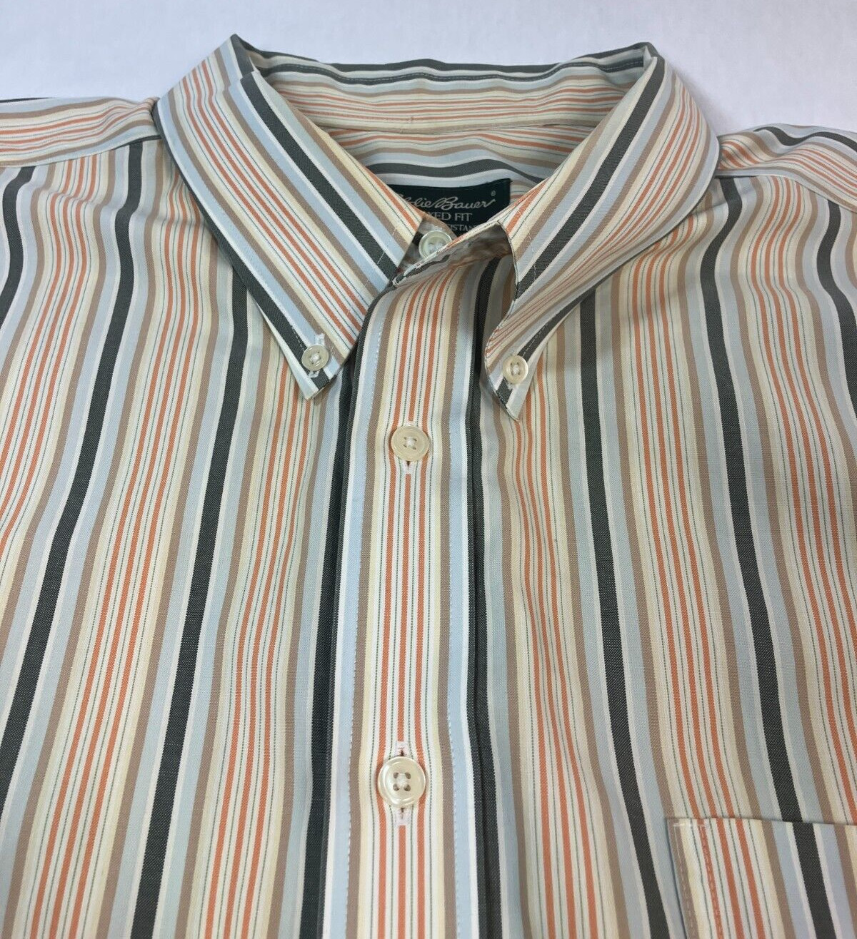 как выглядит Eddie Bauer Shirt Mens XXL Tall Button Down Stripe Wrinkle Resistant Relaxed Fit фото
