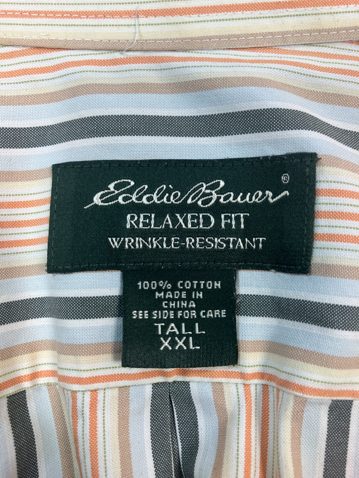 Eddie Bauer Shirt Mens XXL Tall Button Down Stripe Wrinkle Resistant Relaxed Fit
