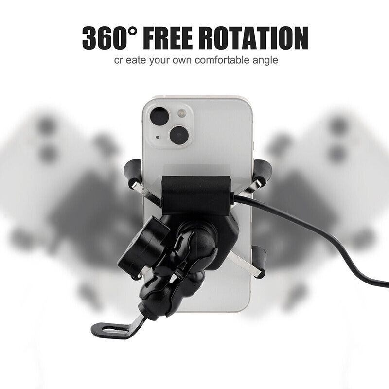 Motorcycle Bike ATV Cell Phone GPS Handlebar Mirror Mount Holder USB Charger USA