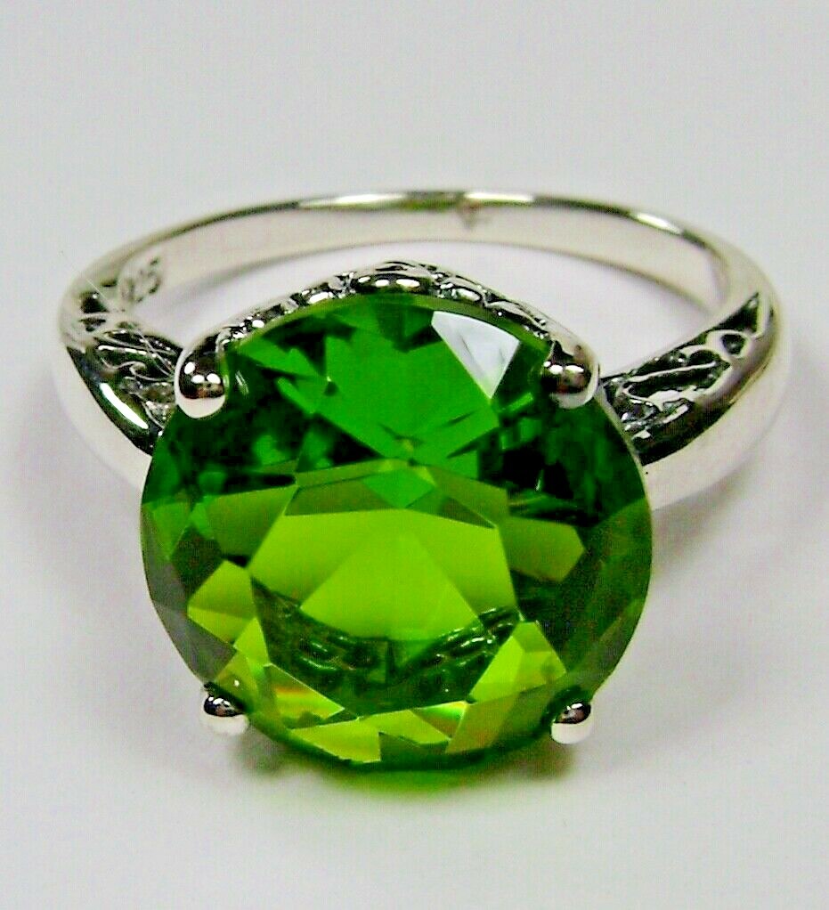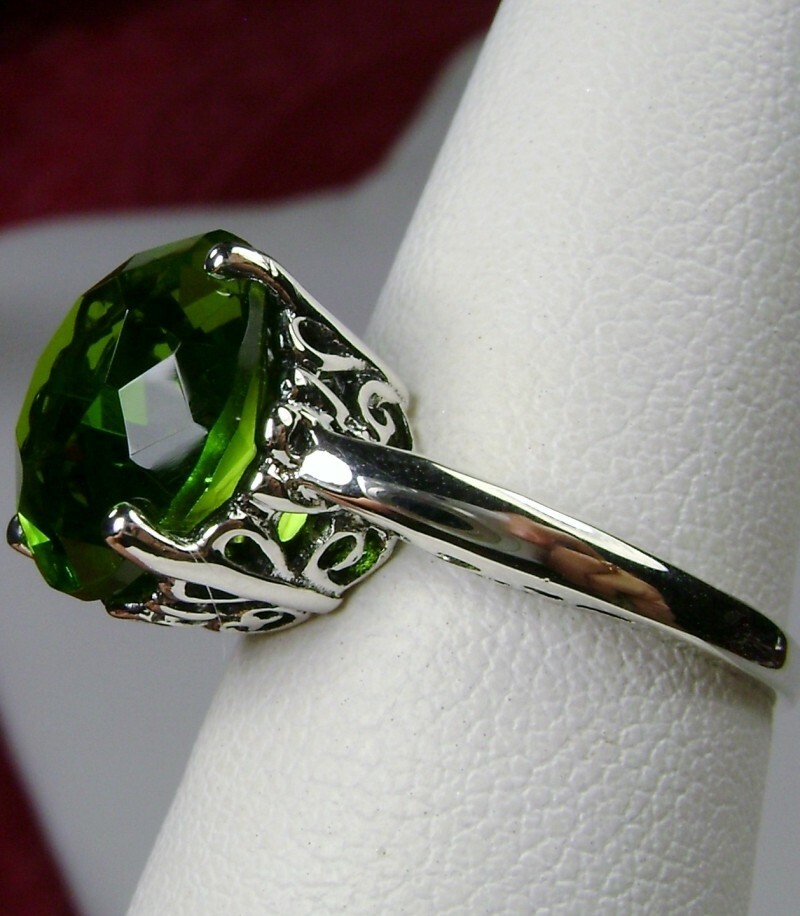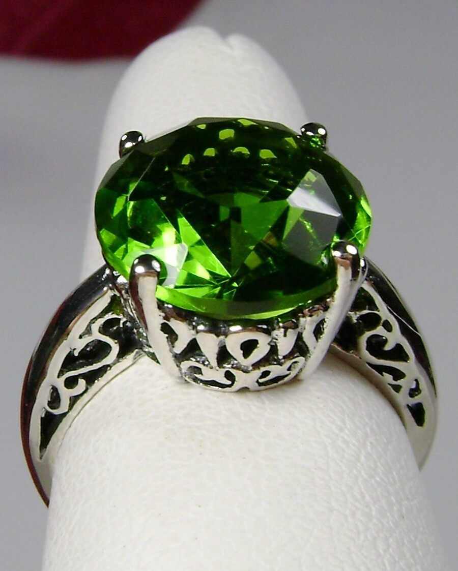 Peridot Ring, 5ct Gem, Victorian Sterling Silver Filigree Custom-Made D4