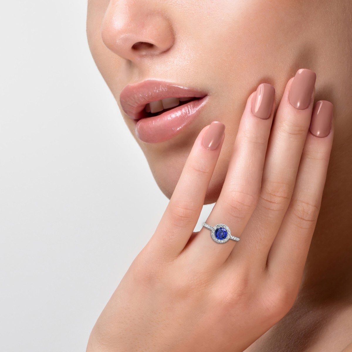 как выглядит 1.20 Ct. Halo Sapphire and Cubic Zirconia Engagement Ring Crafted In 925 Silver фото