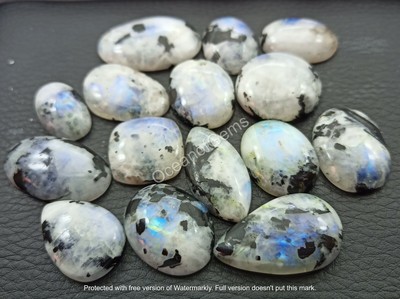 Rainbow Moonstone With Black Tourmaline Cabochon, 103 Ct. 3-5 Pcs Loose Gemstone