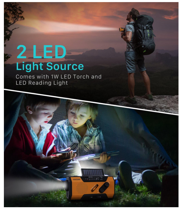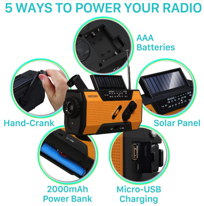Radio port til con manivela solar de emergencia, radio NOAA meteorol gica para