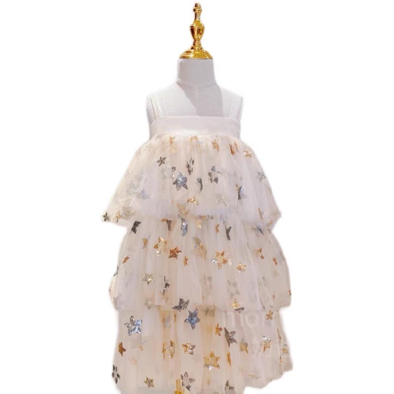 как выглядит Rosa girl/s beige star layered strappy dress birthday dress size 5T фото