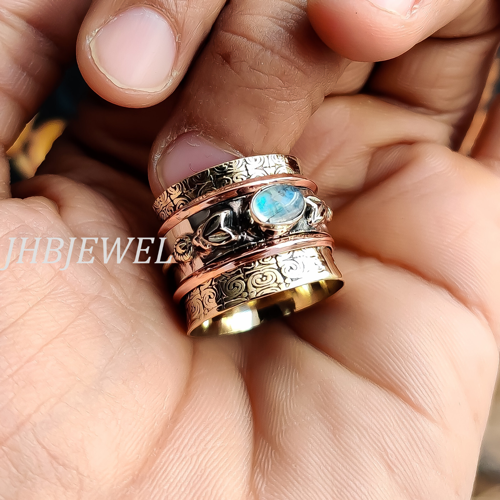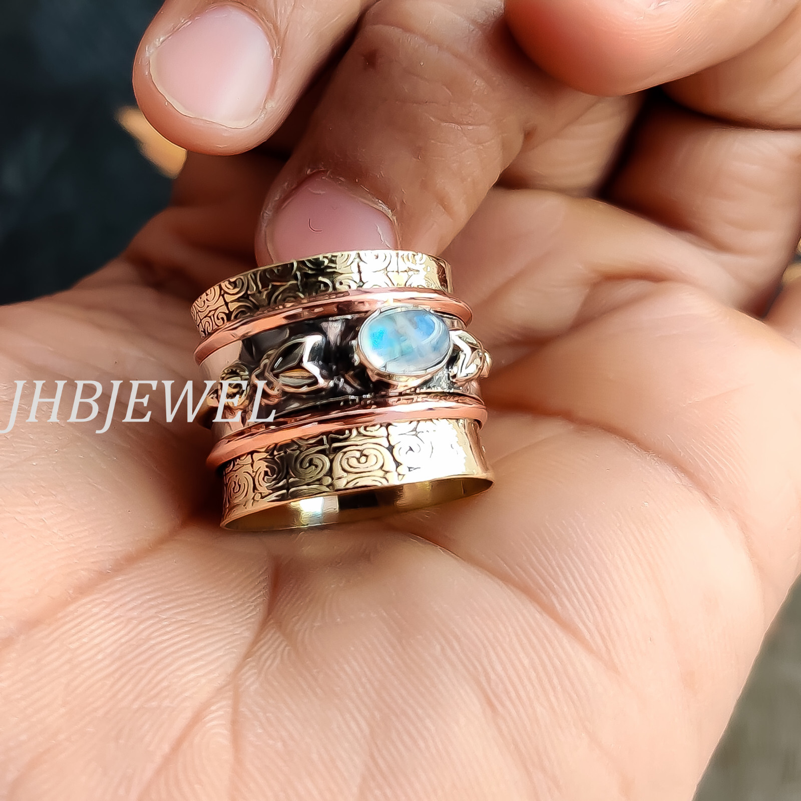 Moonstone Rainbow Gemstone 925 Sterling Silver Spinner Ring Beauty Jewelry
