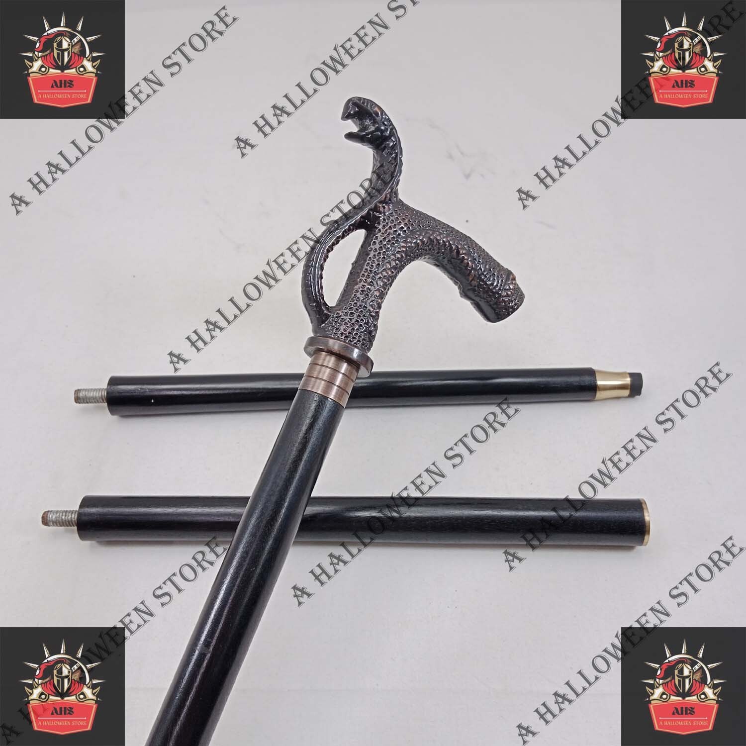 Victorian Antique Cobra Head Handle Working Wooden Walking Stick Vintage Cane