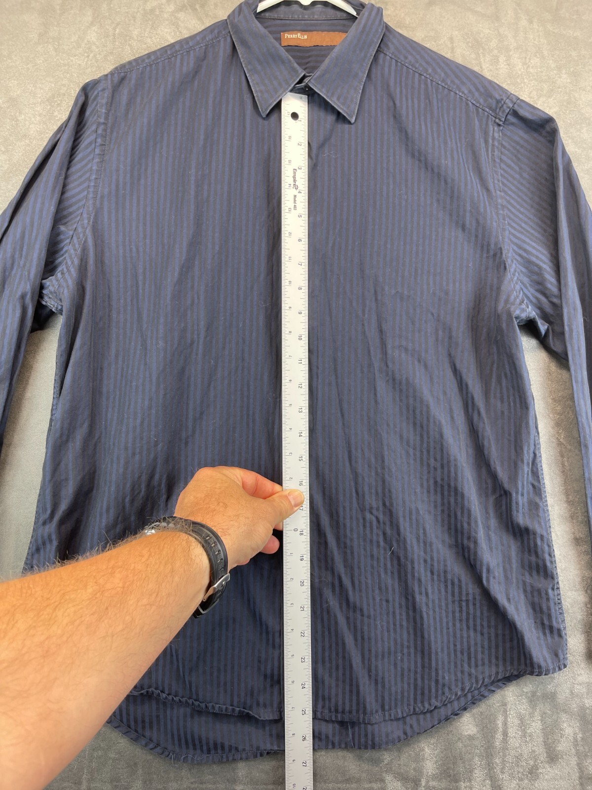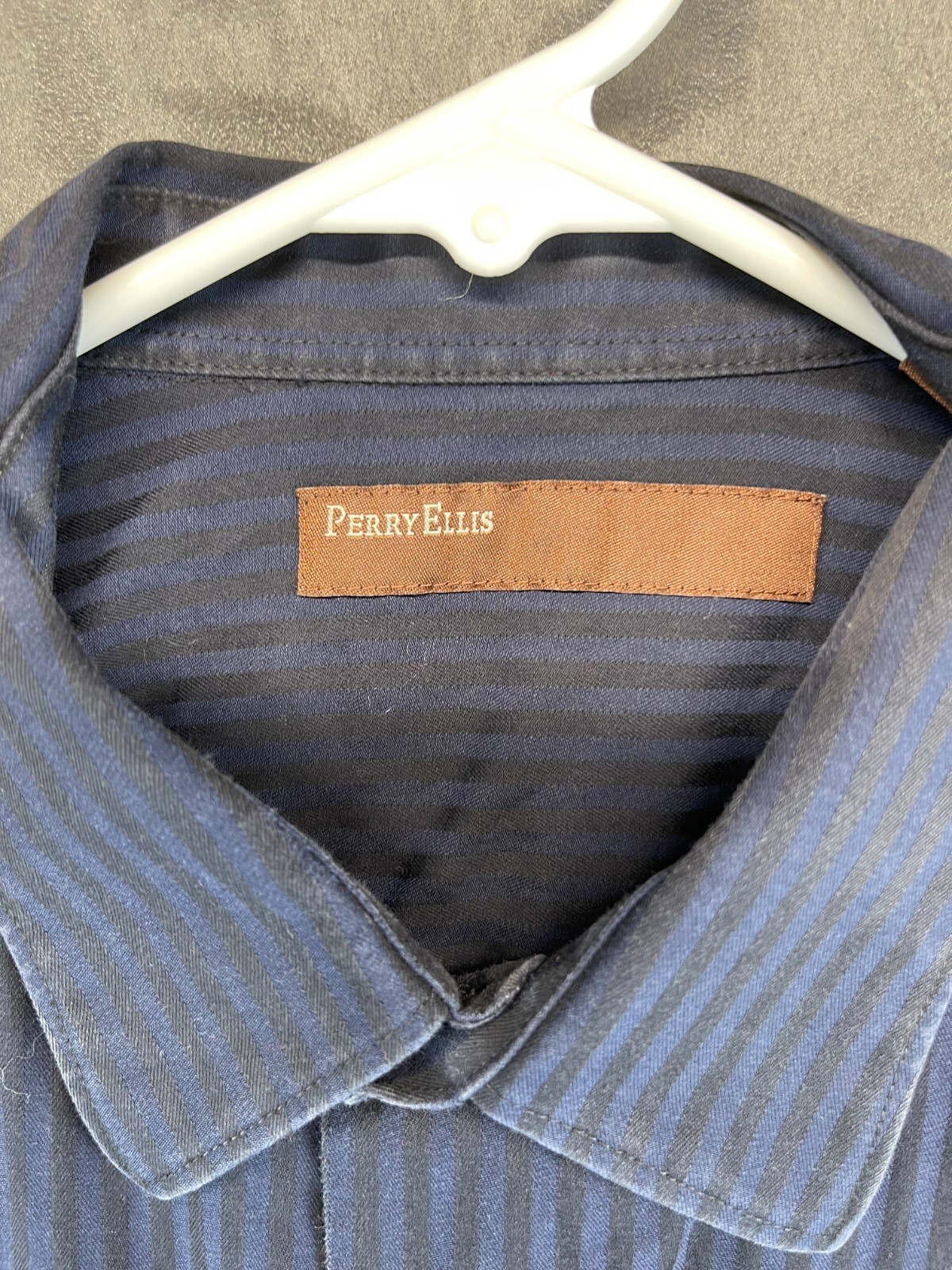 как выглядит Perry Ellis Dress Shirt - Mens L - Blue Black Stripes - 100 Cotton 646 фото