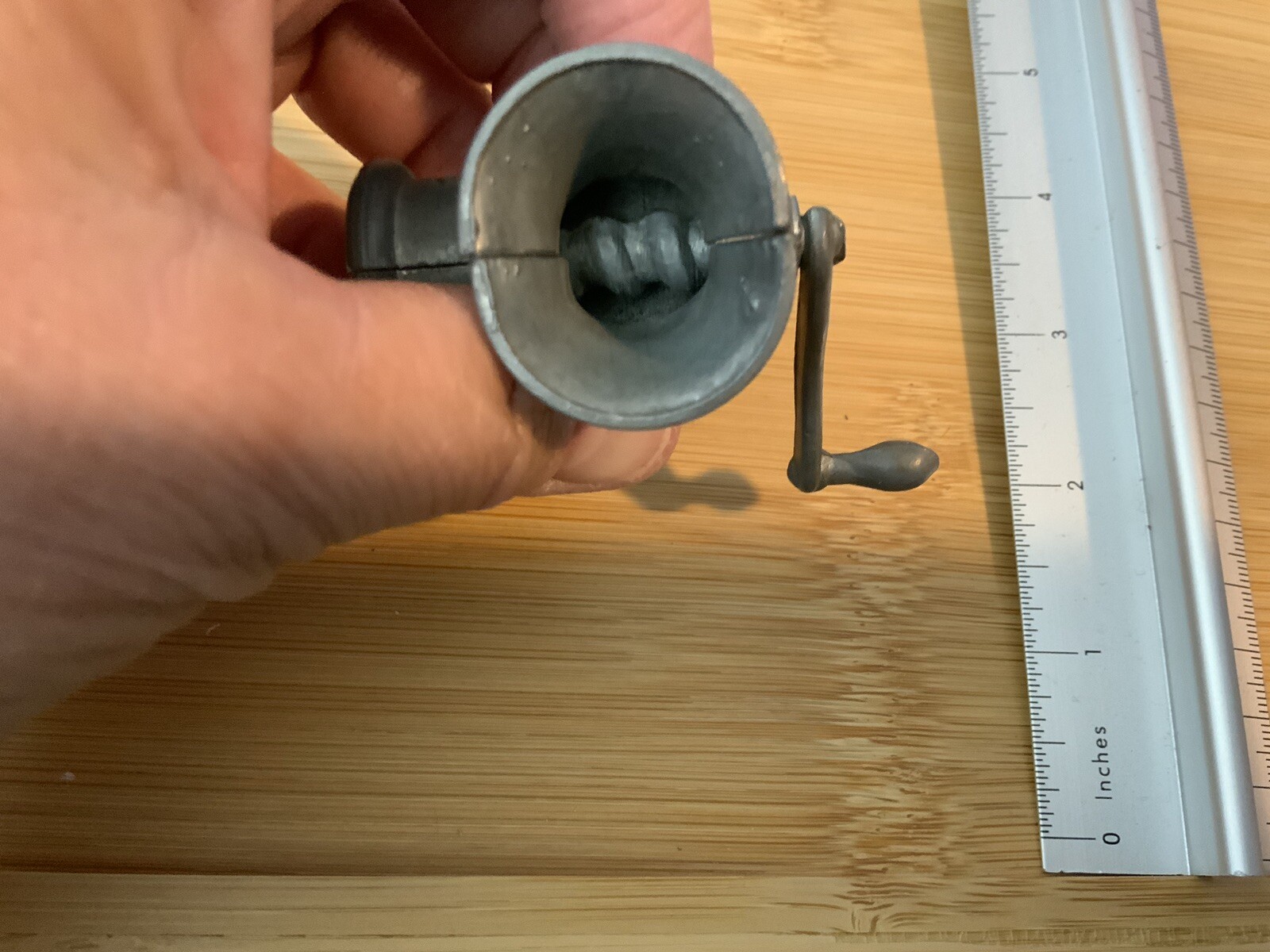 как выглядит Vintage Doll House Child Salesman Sample 3.5 Die Cast Metal Meat Grinder фото
