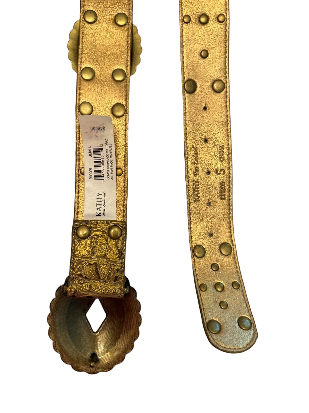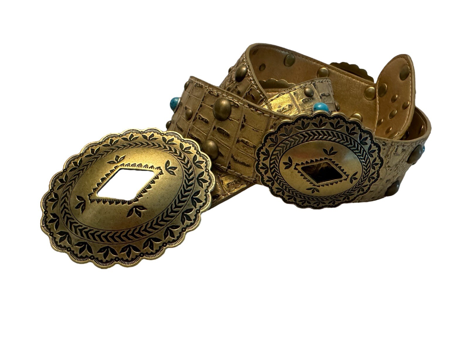 Kathy Van Zeeland Gold Concho Hornback Turquoise Western Belt Small