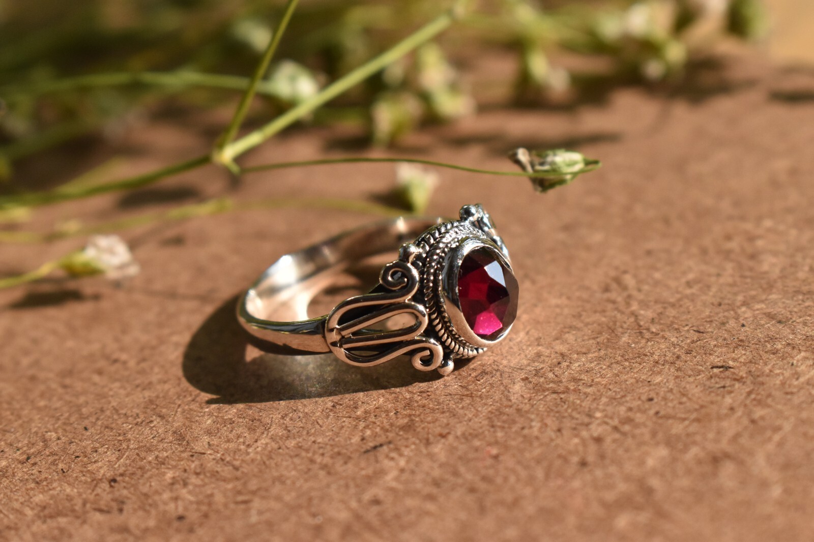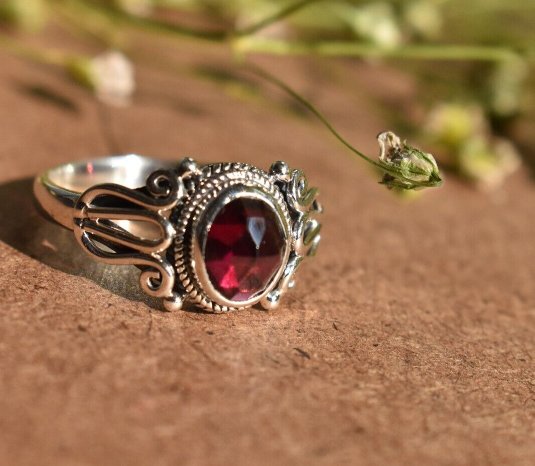 Red Garnet Handmade Ring 925 Sterling Silver Boho Design