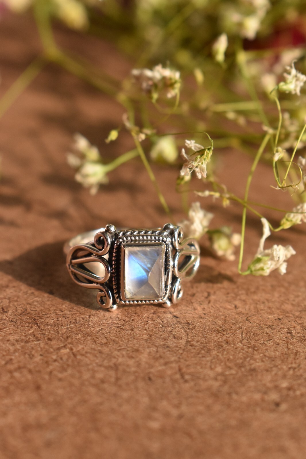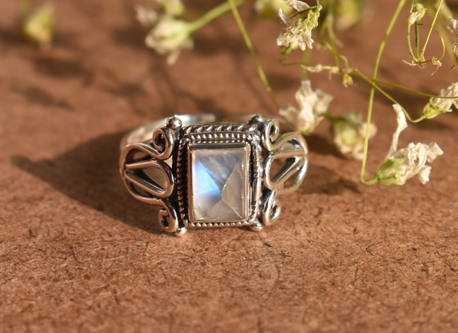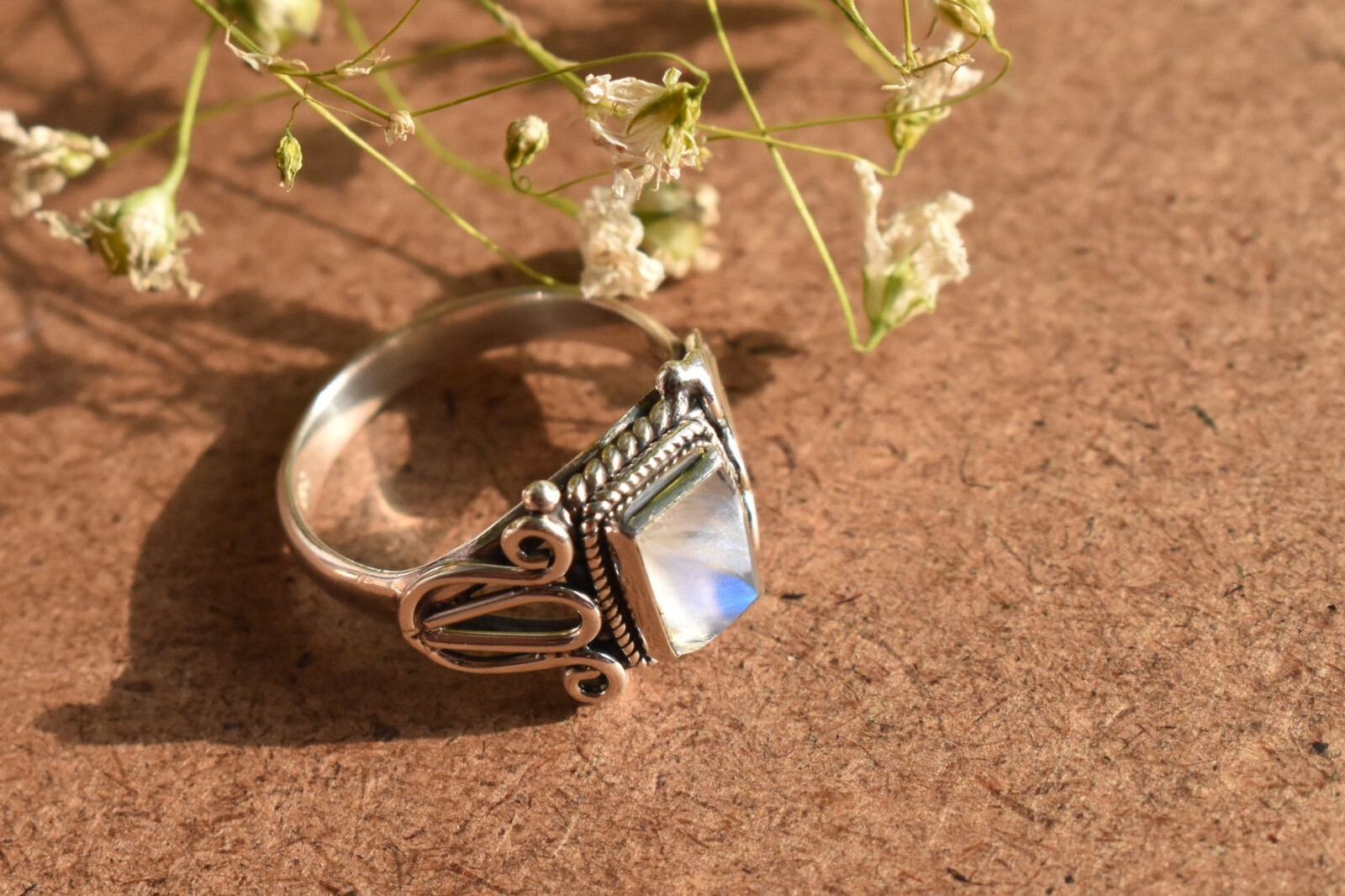 Moonstone Handmade Ring 925 Sterling Silver Boho Design