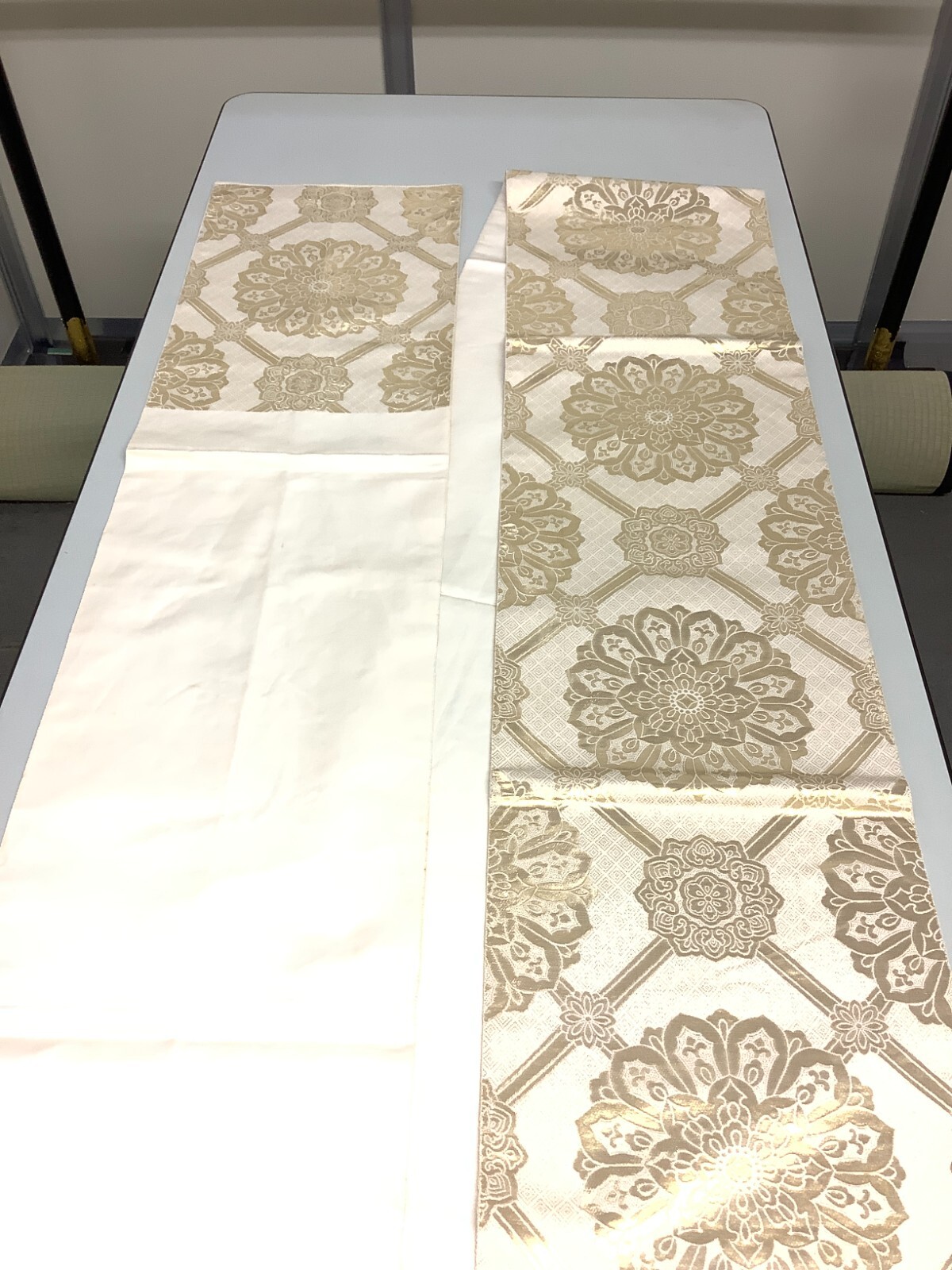 Japanese Vintage Kimono Fukuro Obi Pure silk white expensive tradition 168x12in