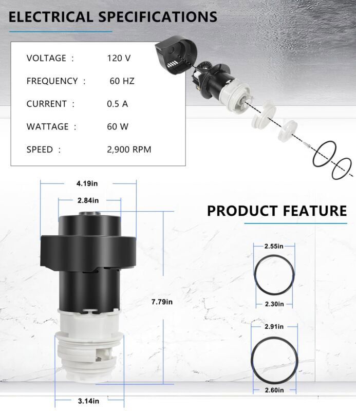 154844301 Dishwasher Circulation Pump Motor with O-Rings Kit For Frigidaire