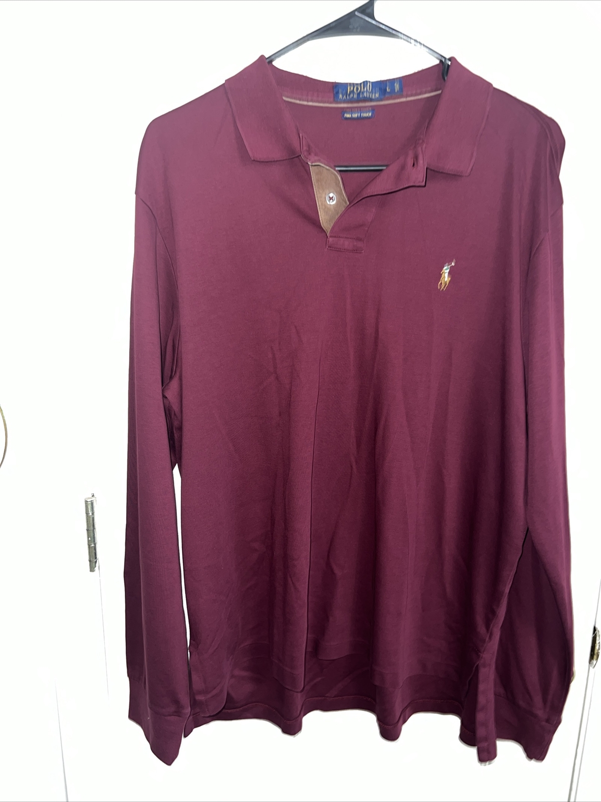 как выглядит Polo Ralph Lauren Pima Touch Cotton Red Dark Sleeve Mens Shirt Size L фото