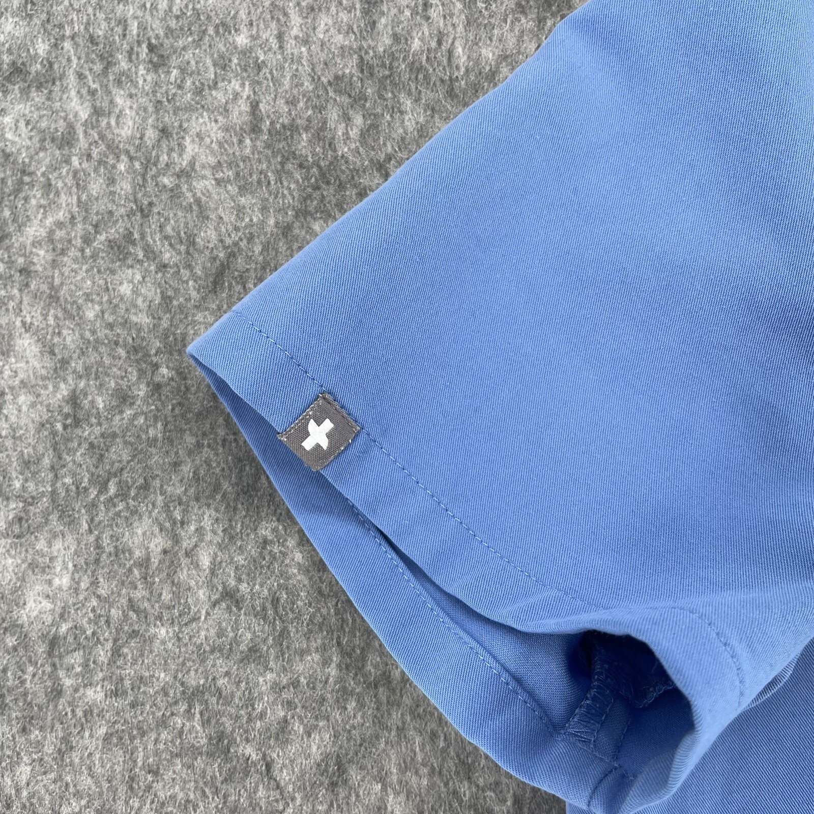как выглядит Figs Womens Blue Slim Catarina One Pocket Scrub Top Size XS фото