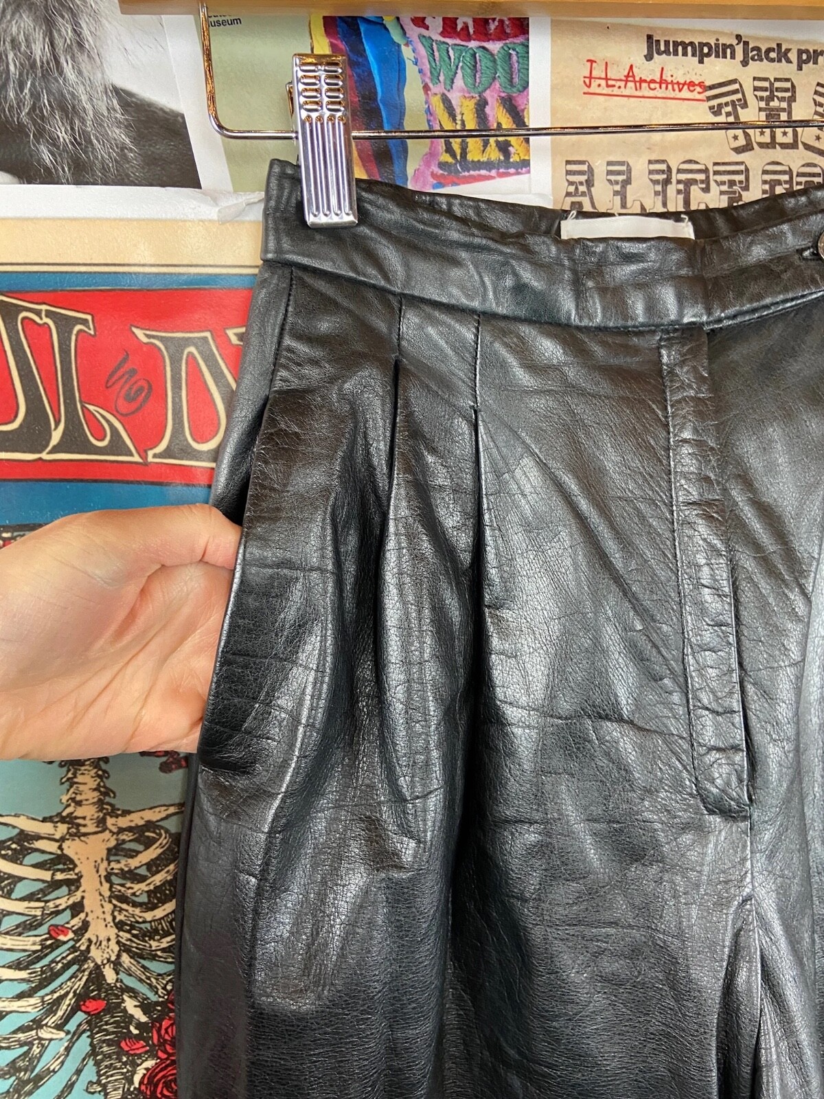 как выглядит Vintage Women 90s Black Tapered High Rise Pleat Leather Pants 23x26 Petites PXXS фото