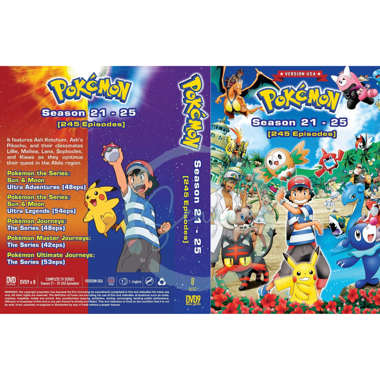 POKEMON SERIES Season 1 - 25 USA English Version 21 Movies DVD All Region