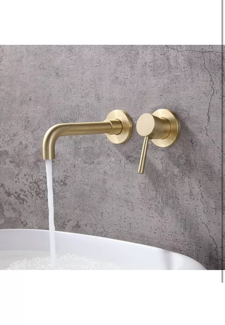 Wall Mount Bathroom Sink Faucet Brushed Brass Single Handle Swivel Solid Brass