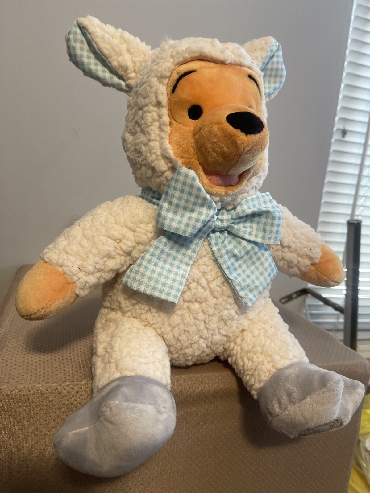 • Disney Store Winnie Pooh Sheep Lamb Easter Blue Plaid Bow Tie Ears 12" Plush