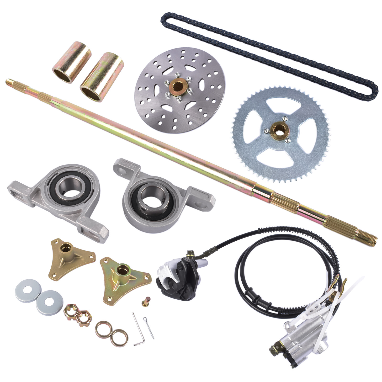 Rear Live Axle Kit with Brake Assembly Chain for Drift Trike Go Kart ATV Quads