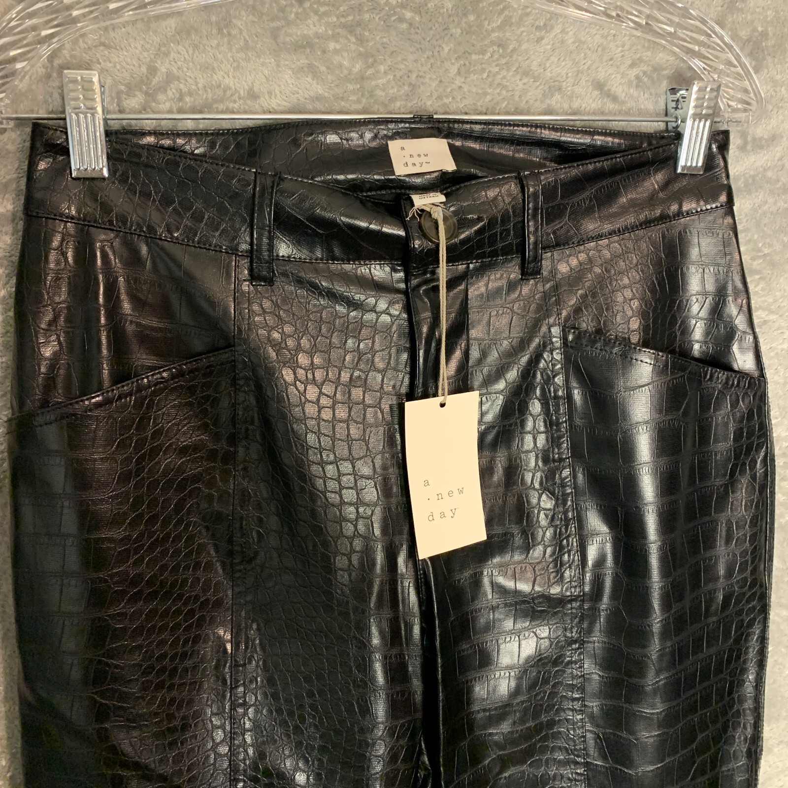 A New Day Women High Rise Faux Leather Snake Skin Relaxed Fit Pants 6 NWT Black