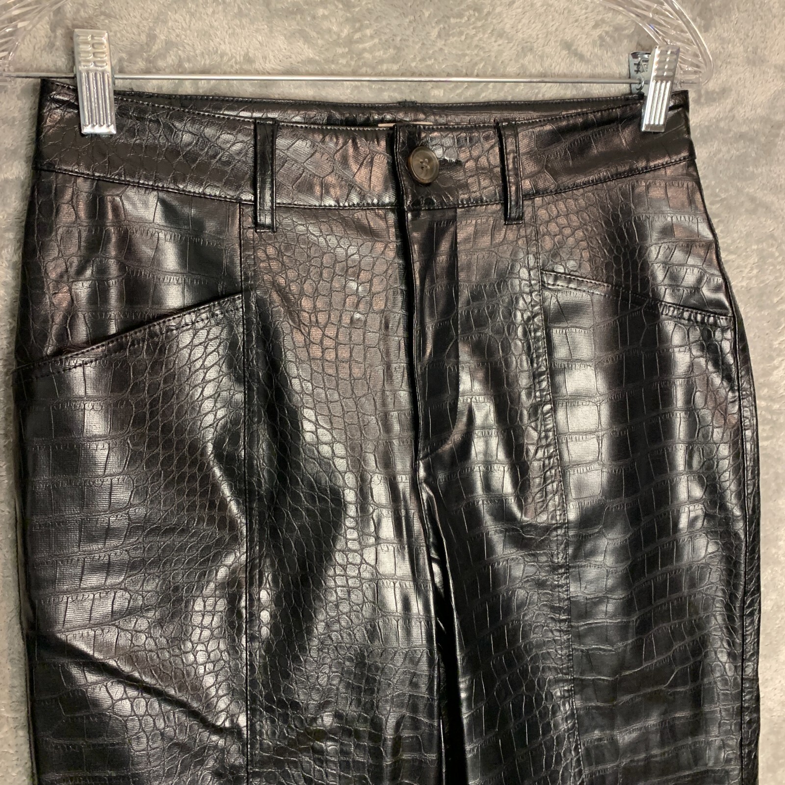 как выглядит A New Day Women High Rise Faux Leather Snake Skin Relaxed Fit Pants 6 NWT Black фото