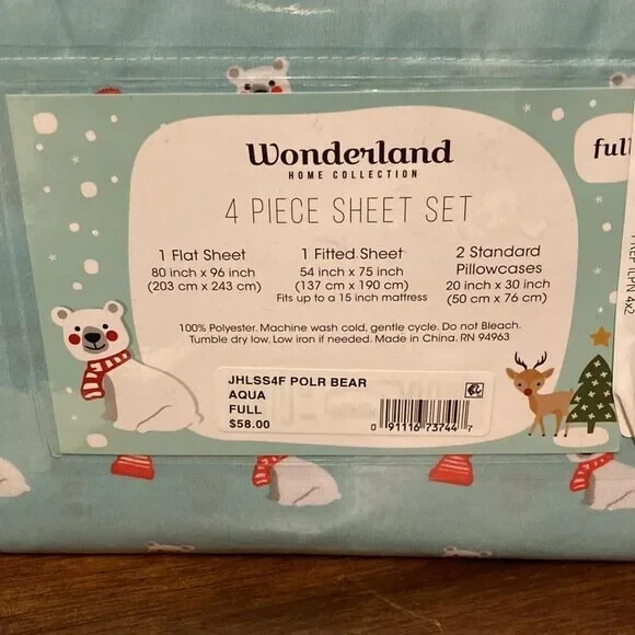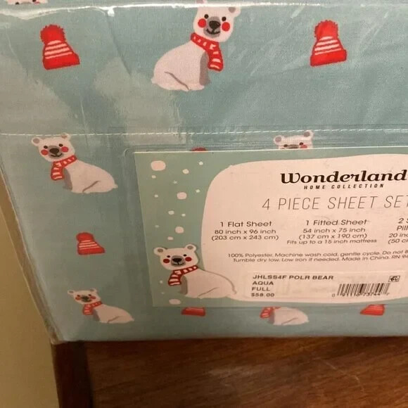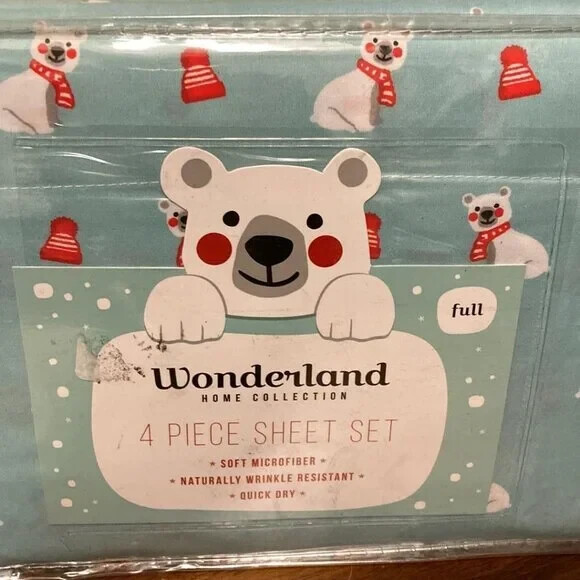 NEW Wonderland Home BABY POLAR BEAR Holiday Microfiber 4 Pc Full Sheet Set
