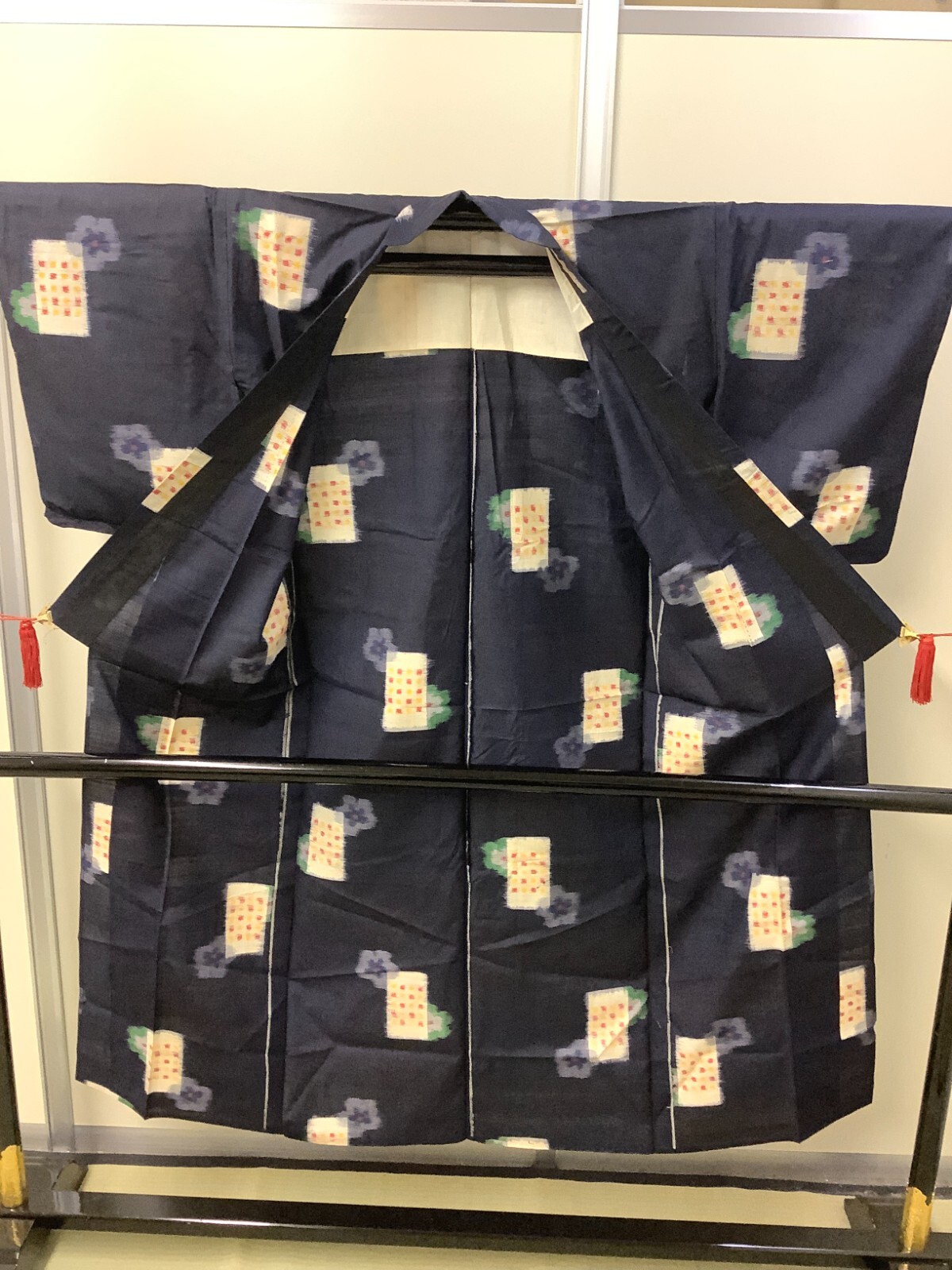 как выглядит Japanese Vintage Kimono Cotton Navy blue Tradition Blurred Height 57.87in фото