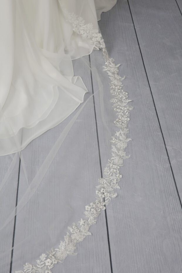 как выглядит 1 tier bridal veil Sequin Lace Edge for bride party фото