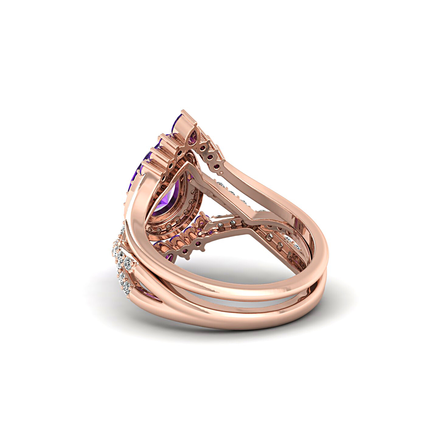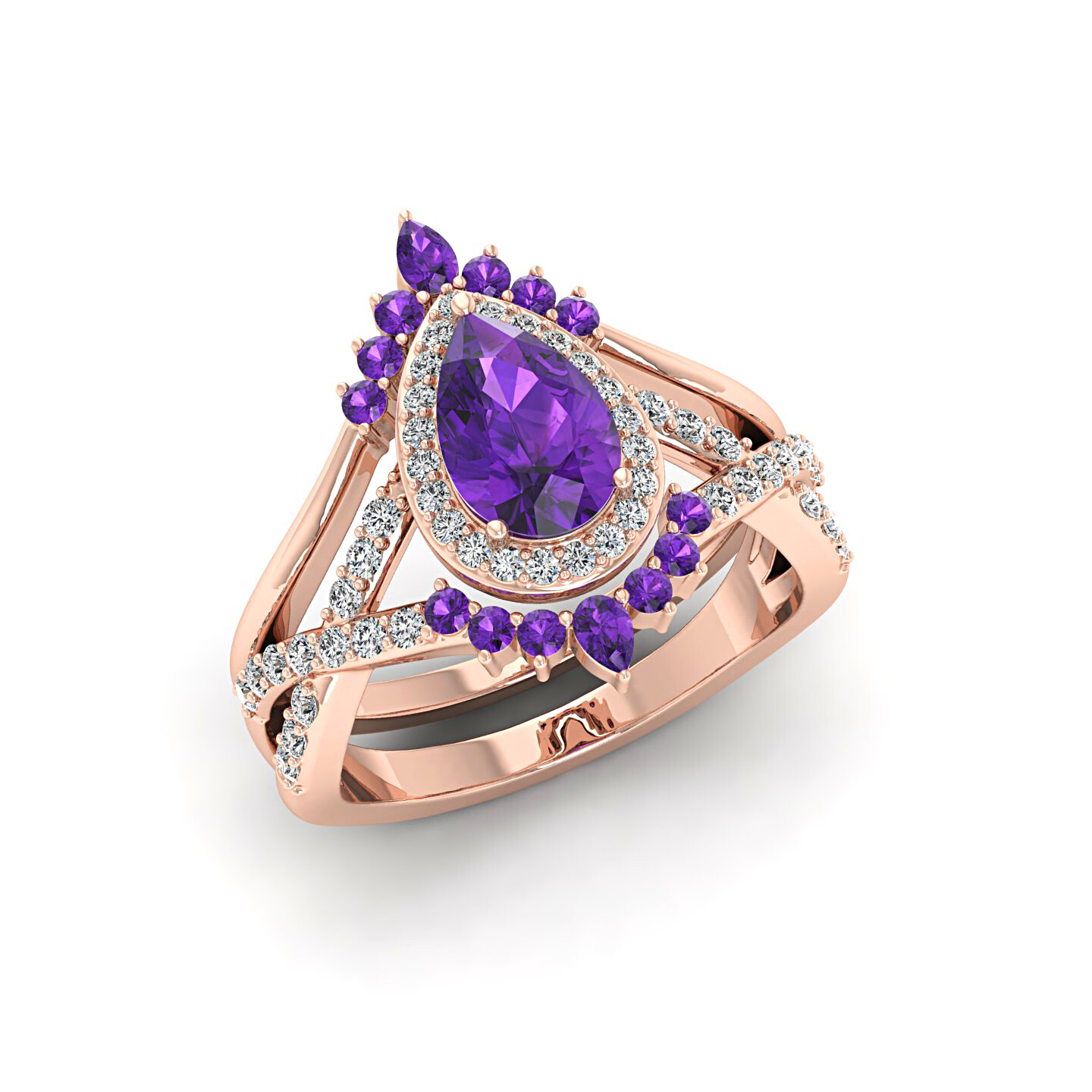 Pear Cut Purple Amethyst Engagement Ring Set 925 Sterling Silver Bridal Ring Set