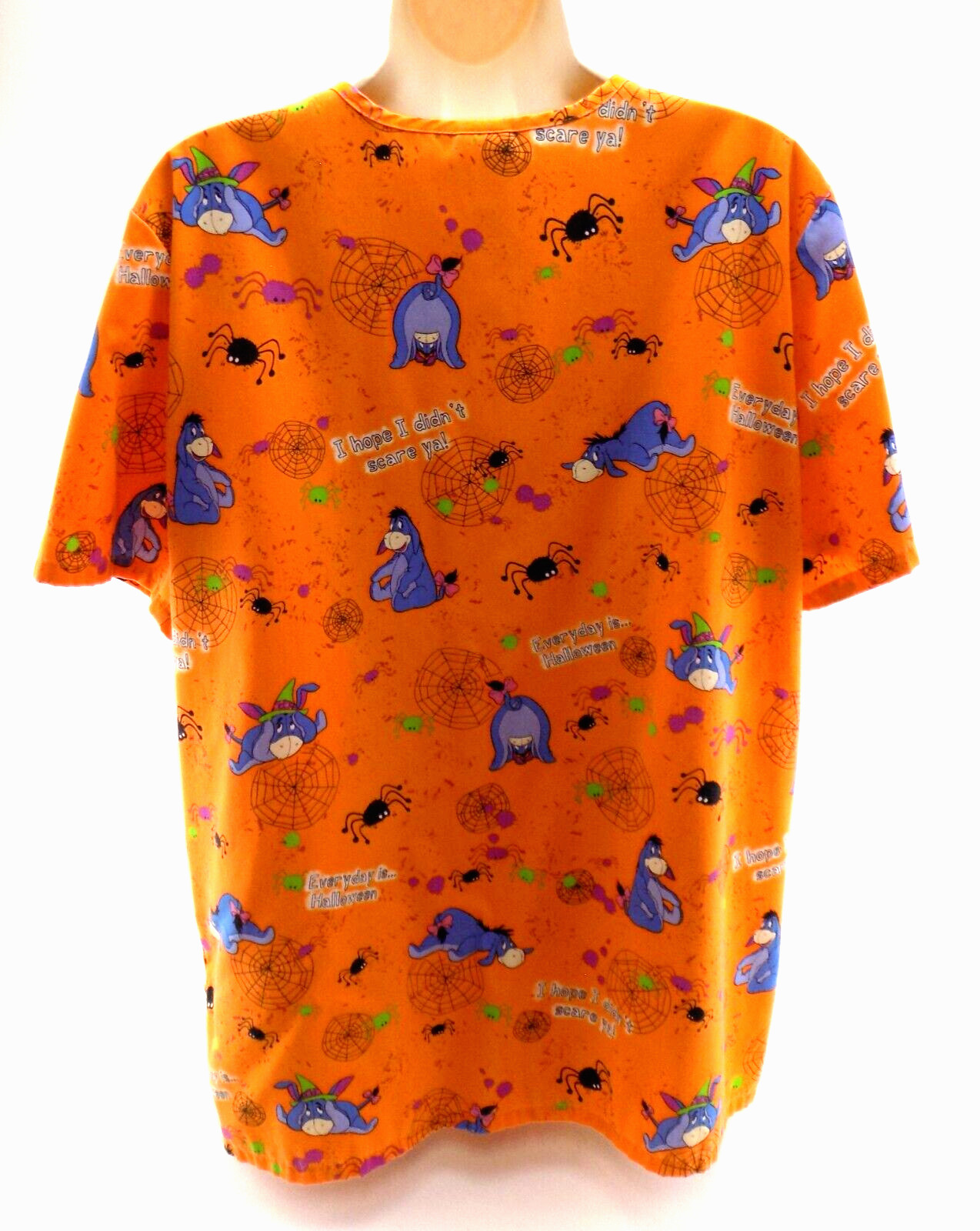 как выглядит Halloween Eeyore Scrub-Top Ladies Sz M The Wonderful World of Disney Spiderweb фото
