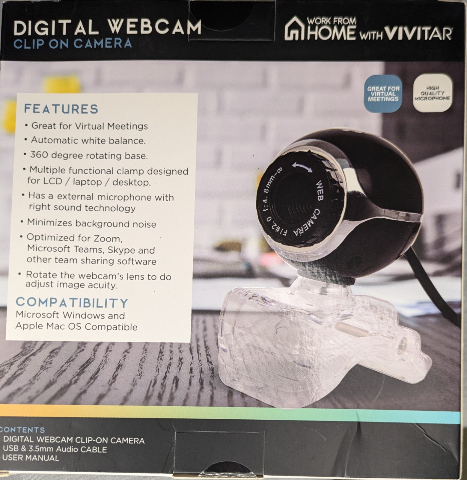 VIVITAR DIGITAL WEBCAM Clip On Camera 360 Rotating Base, Optimized Zoom New