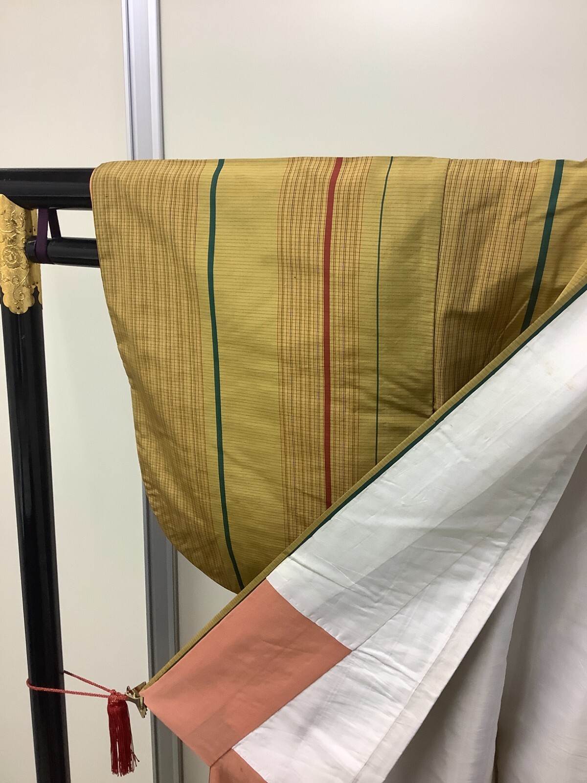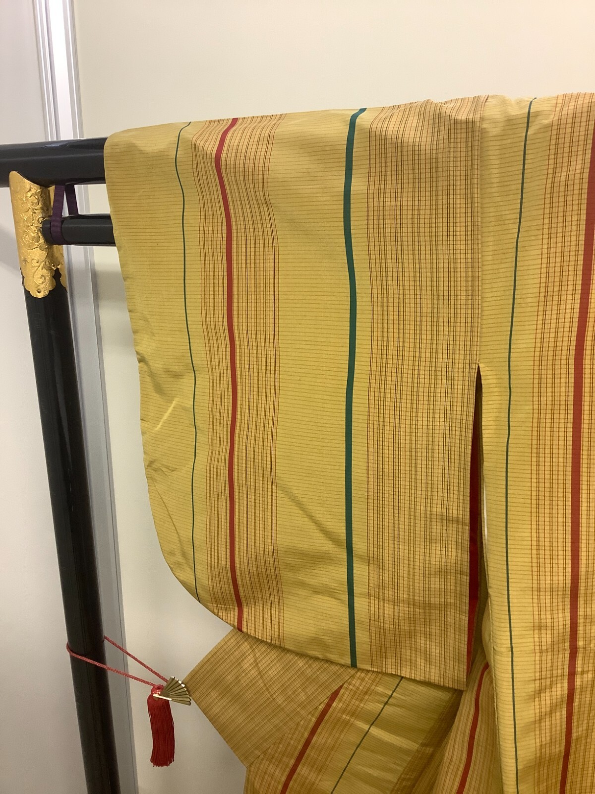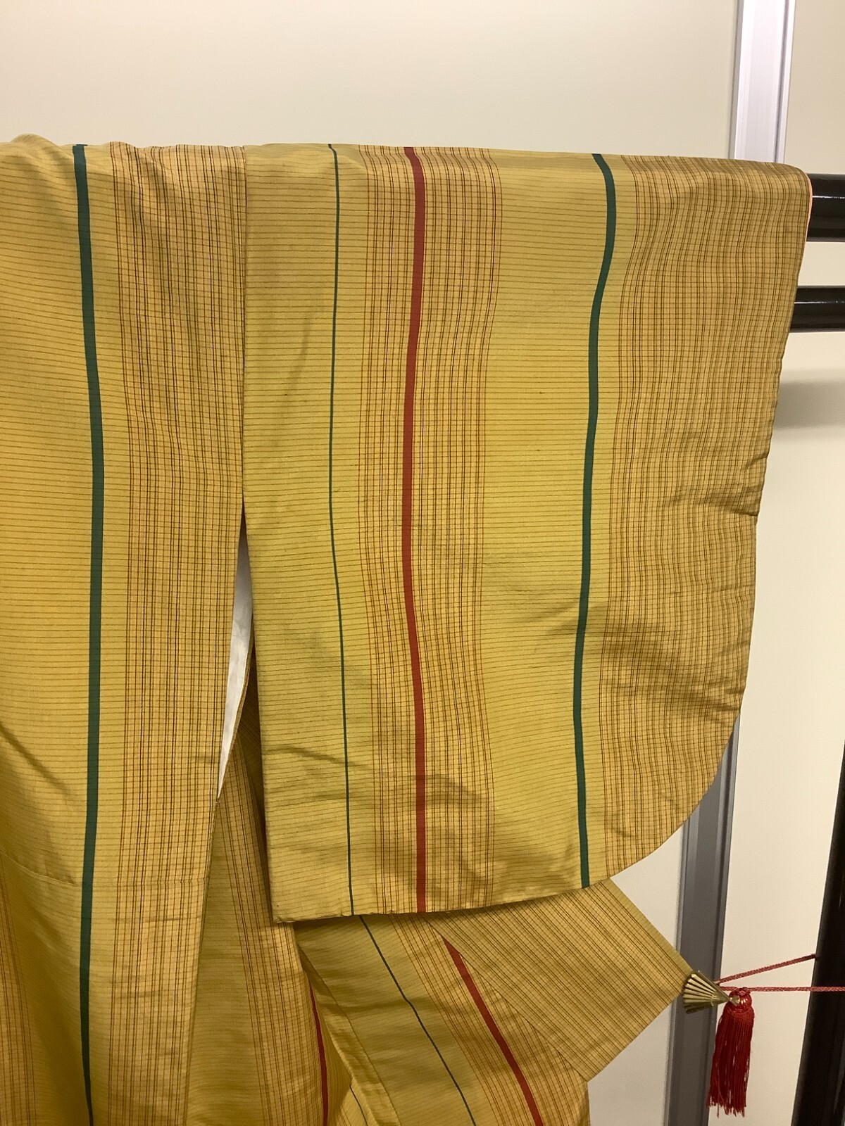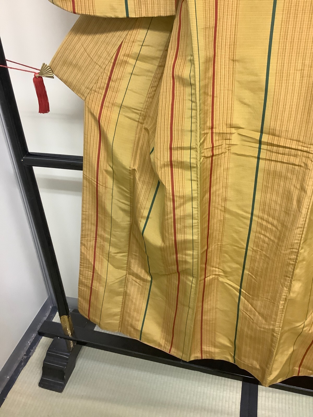 как выглядит Japanese Vintage Kimono Polyester Yellow Line Tradition Dirt Height 57.48in фото