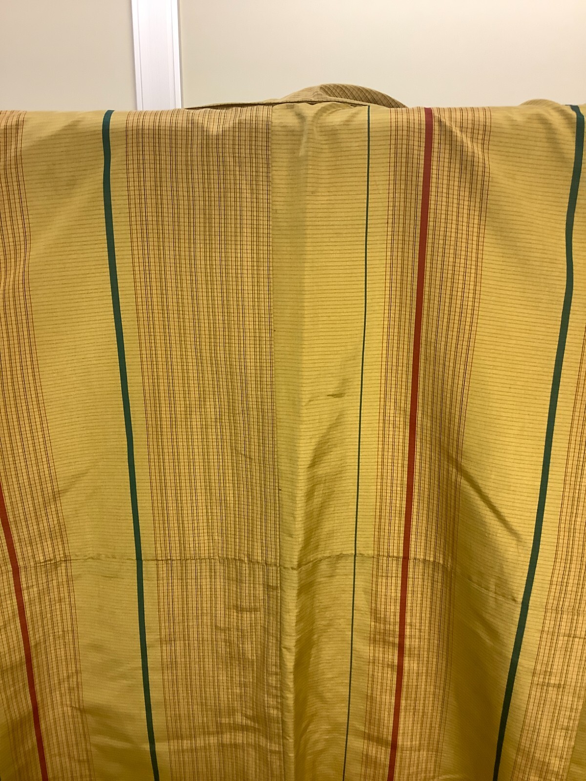 Japanese Vintage Kimono Polyester Yellow Line Tradition Dirt Height 57.48in