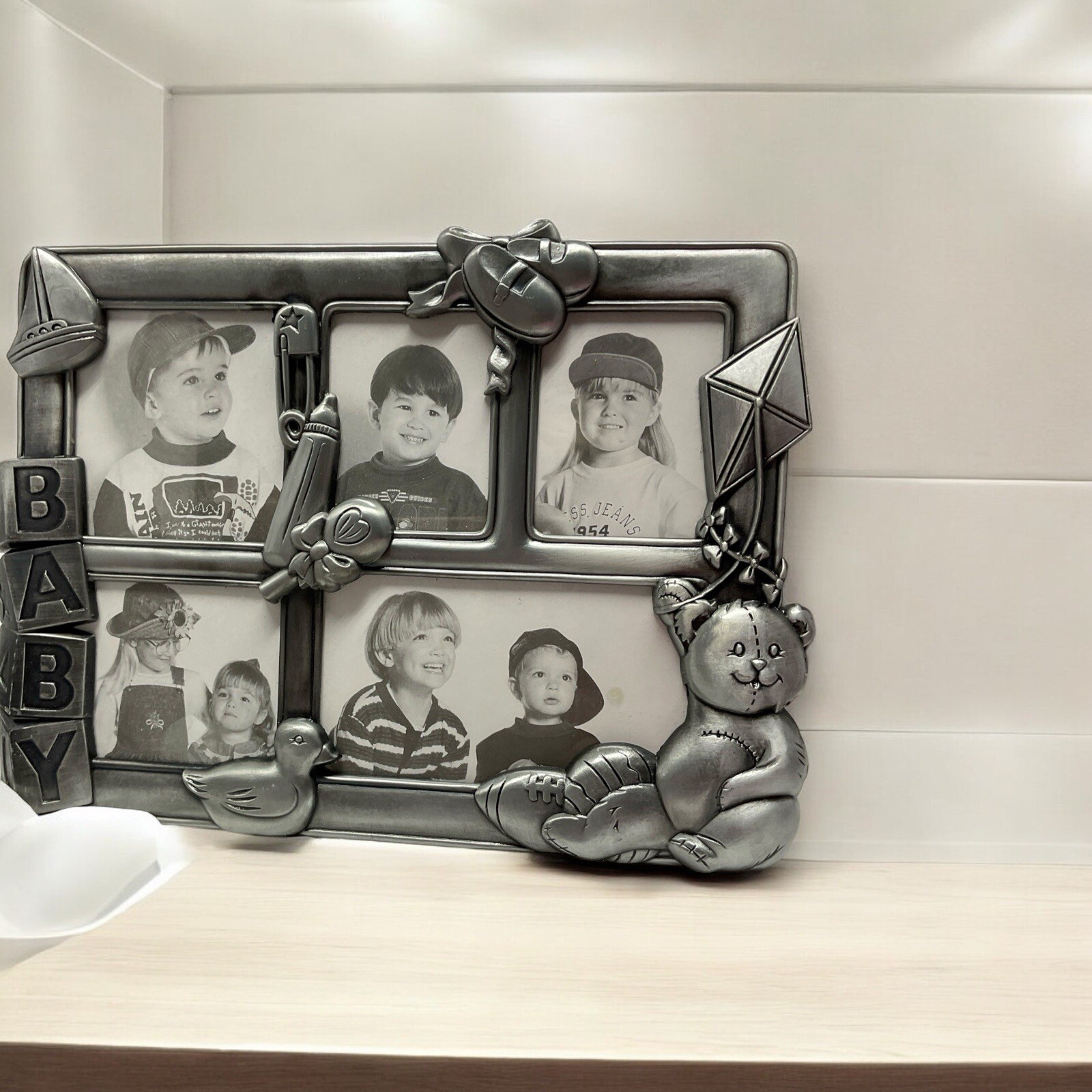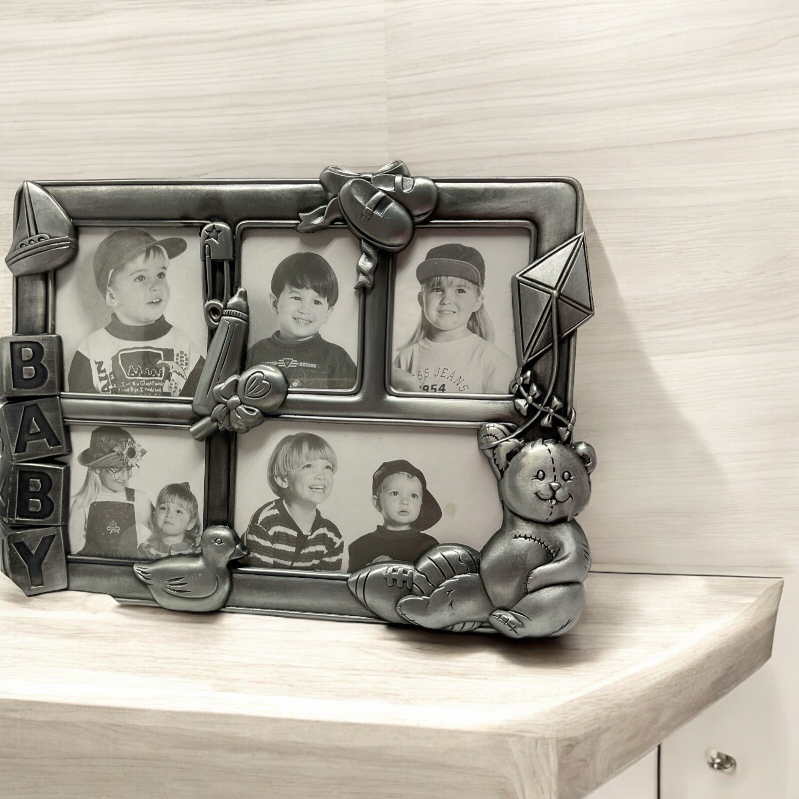 • Pewter Baby Themed Picture Frame Holds Up To 5 Pictures