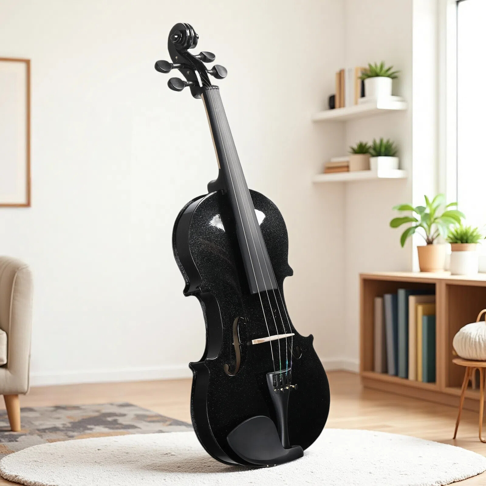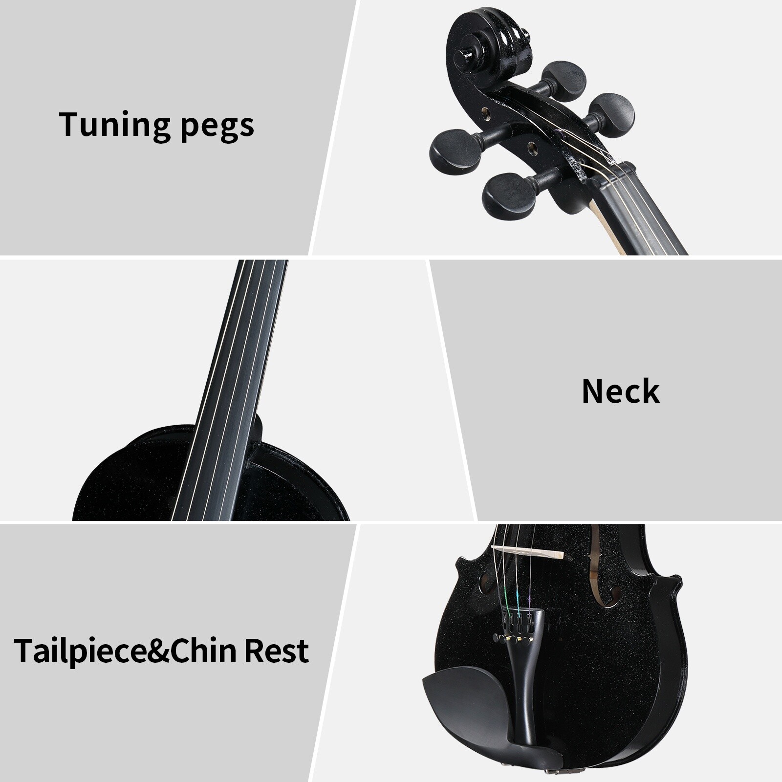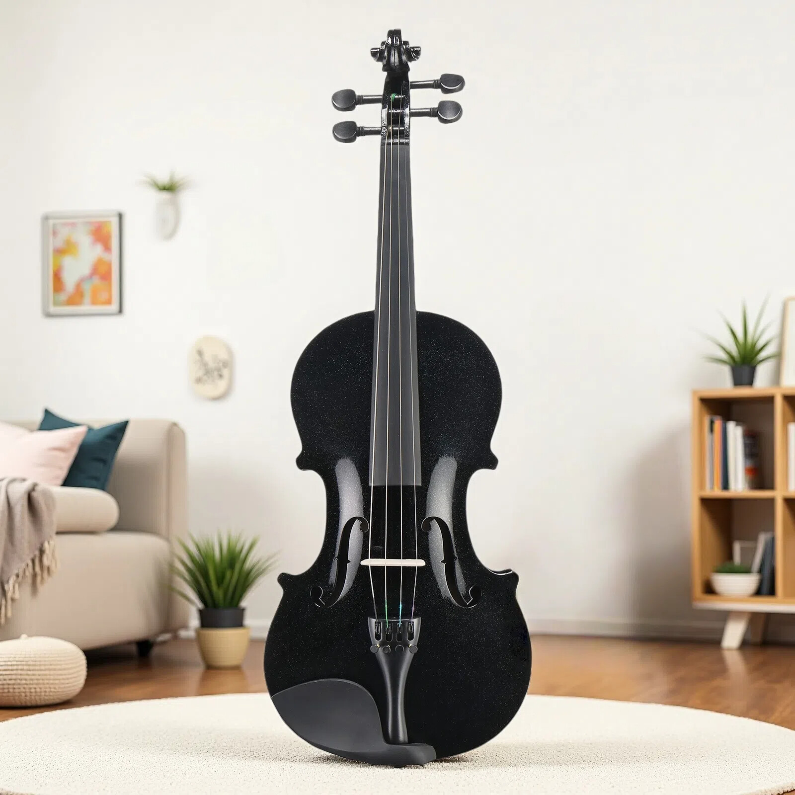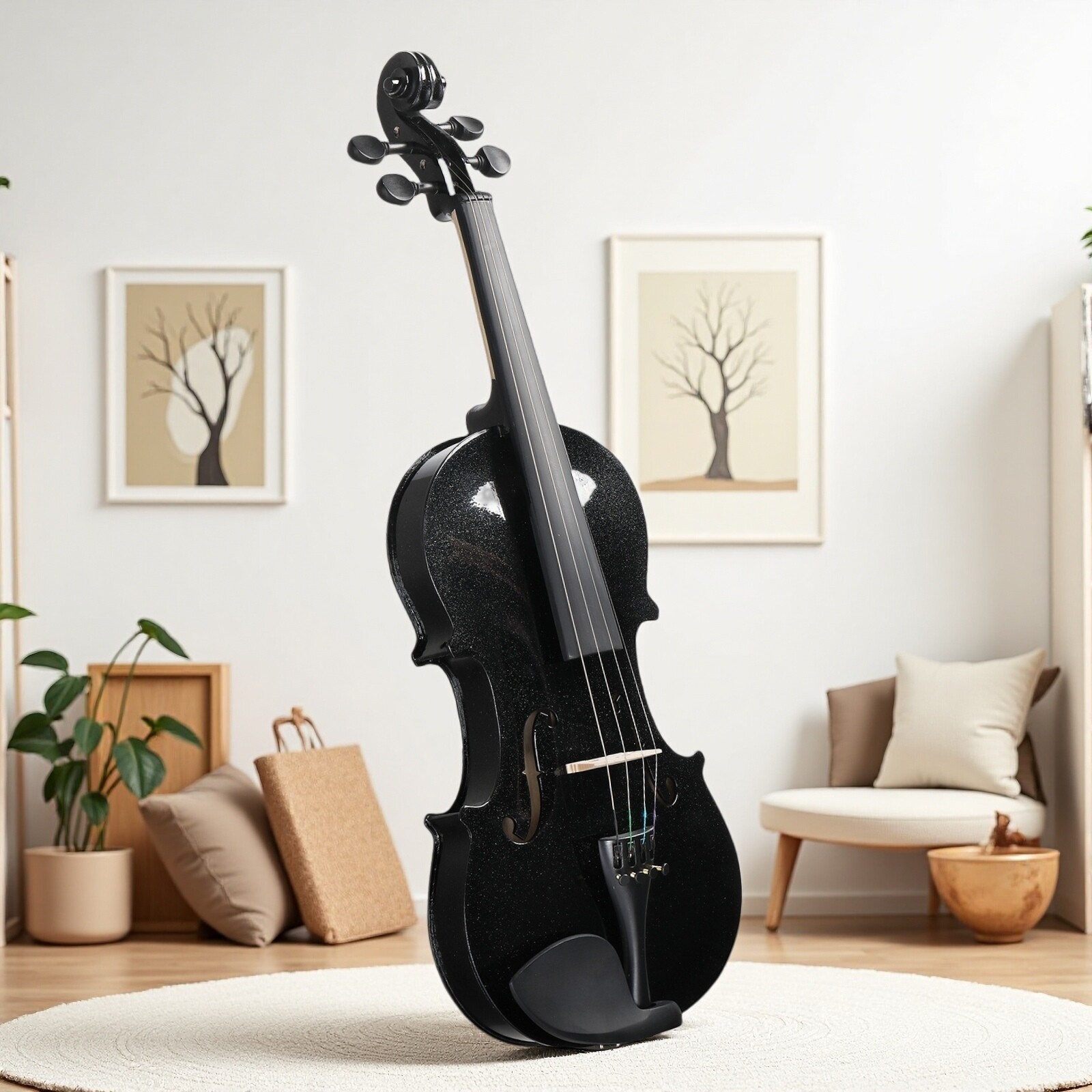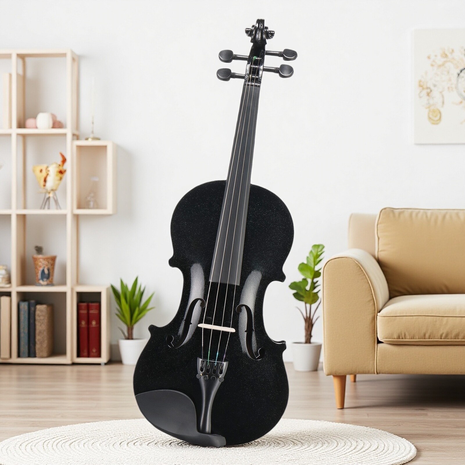 4/4 Full Size Acoustic Beginner Violin Set - Shoulder Rest, Strings Set Black