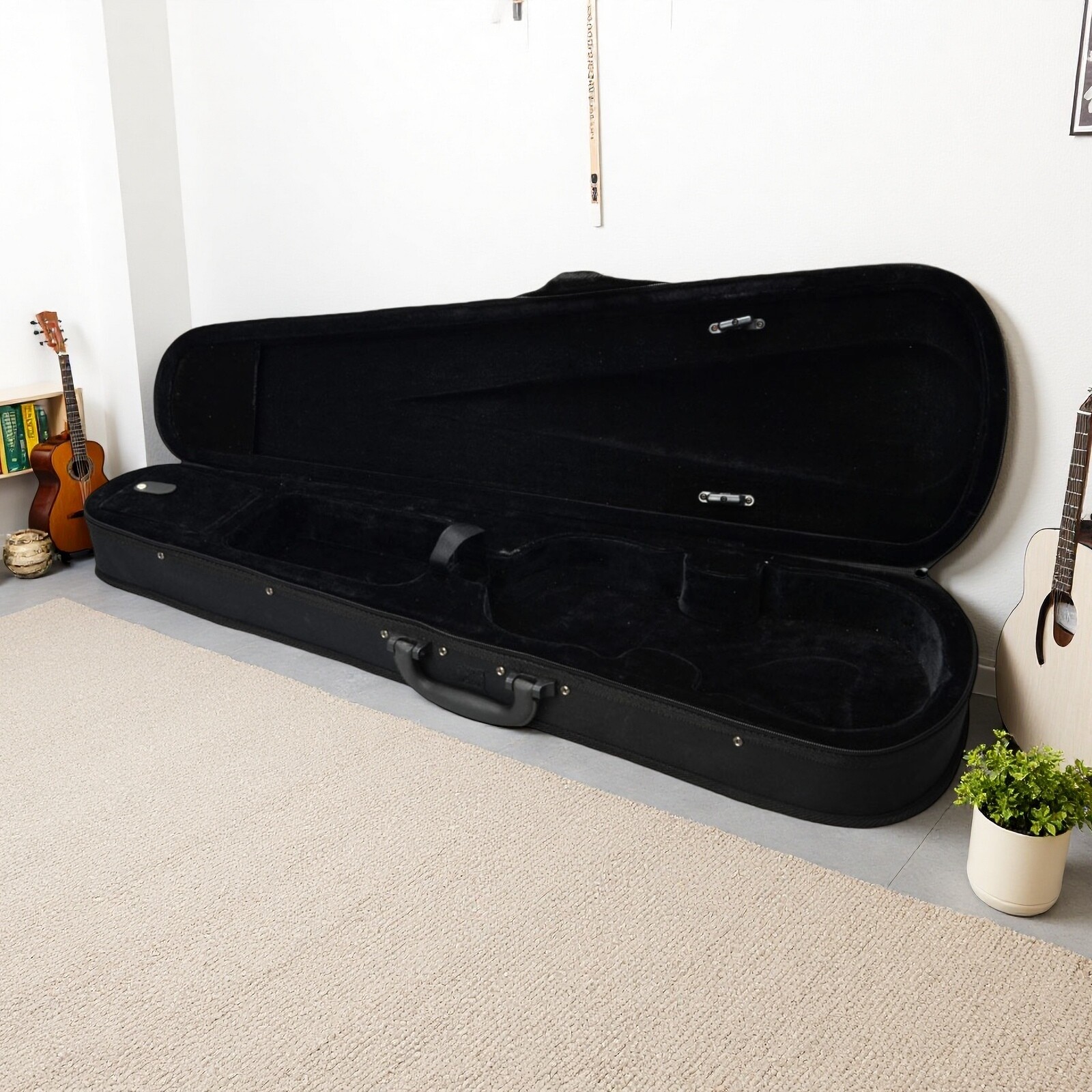4/4 3/4 Violin Hardshell Case - Padded, Black Interior Black Exterior