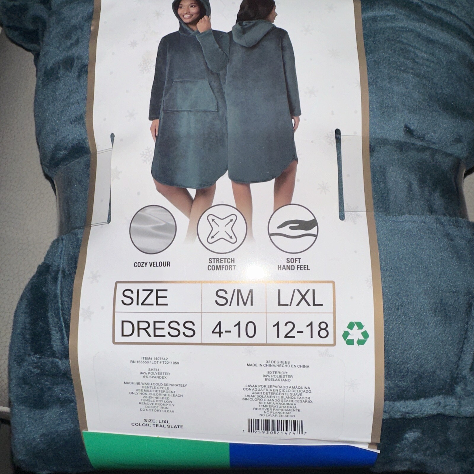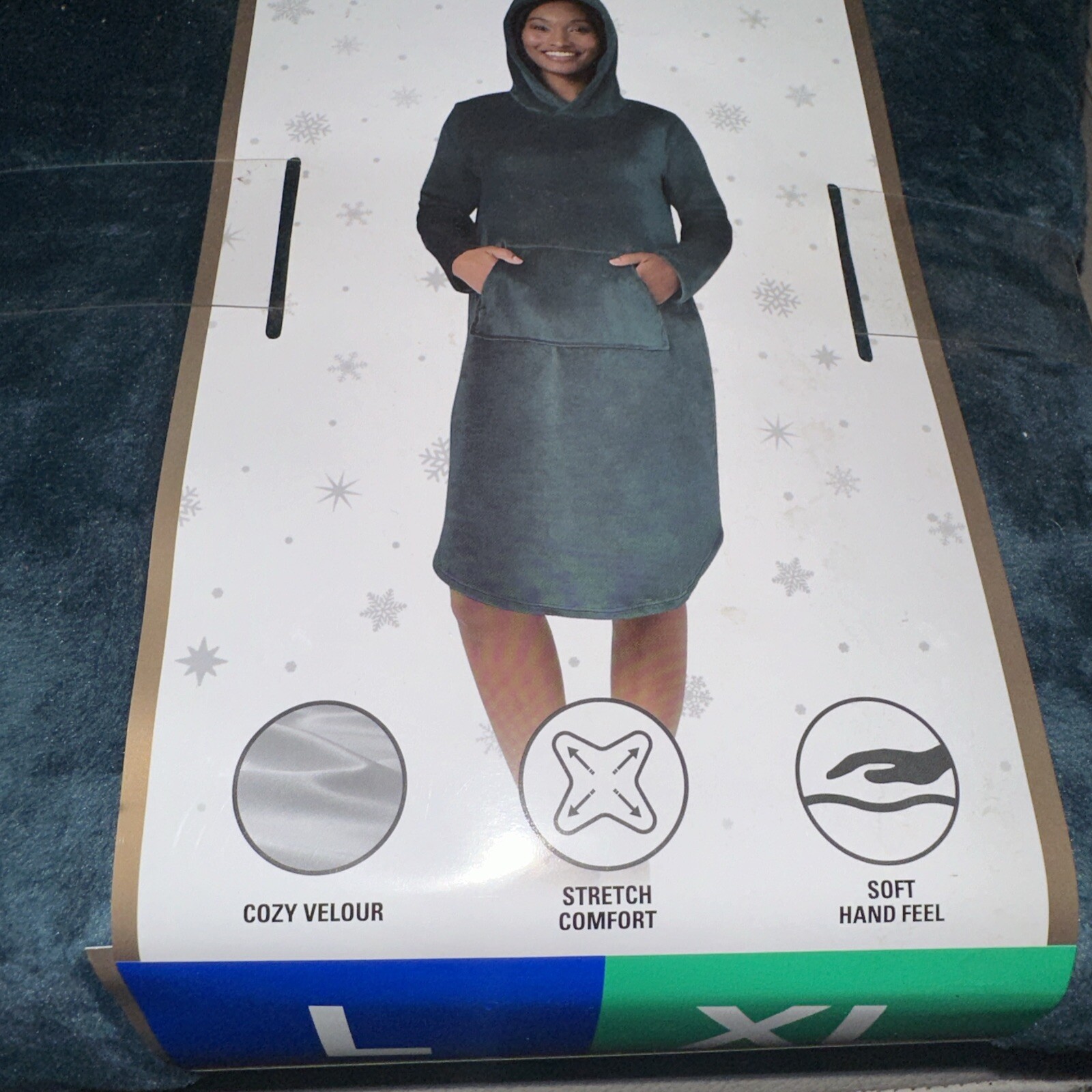 как выглядит 32 Degrees Heat Womens Cozy Plush Hooded Sleep Lounger Teal Blue фото