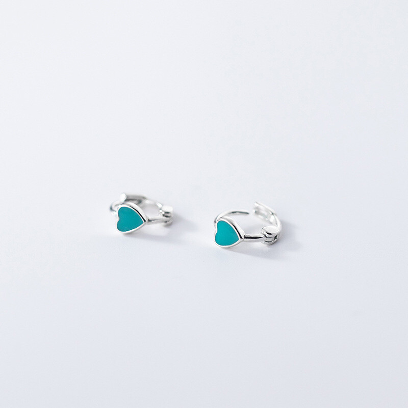 925 Sterling Silver Sleeper 7mm Hoop Earrings with Color Hearts Love Hoops