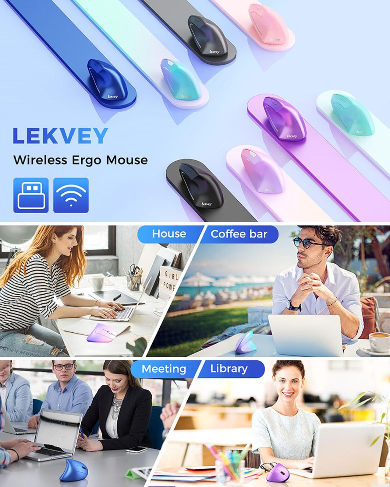 Lekvey Ergonomic Mouse Vertical Wireless Mouse Rechargeable 2.4G USB Optical ...