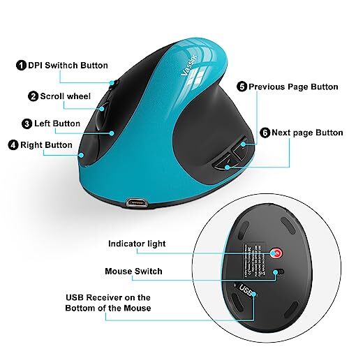 как выглядит Vassink Ergonomic Mouse Rechargeable Wireless Mouse Right Handed Small Mouse ... фото