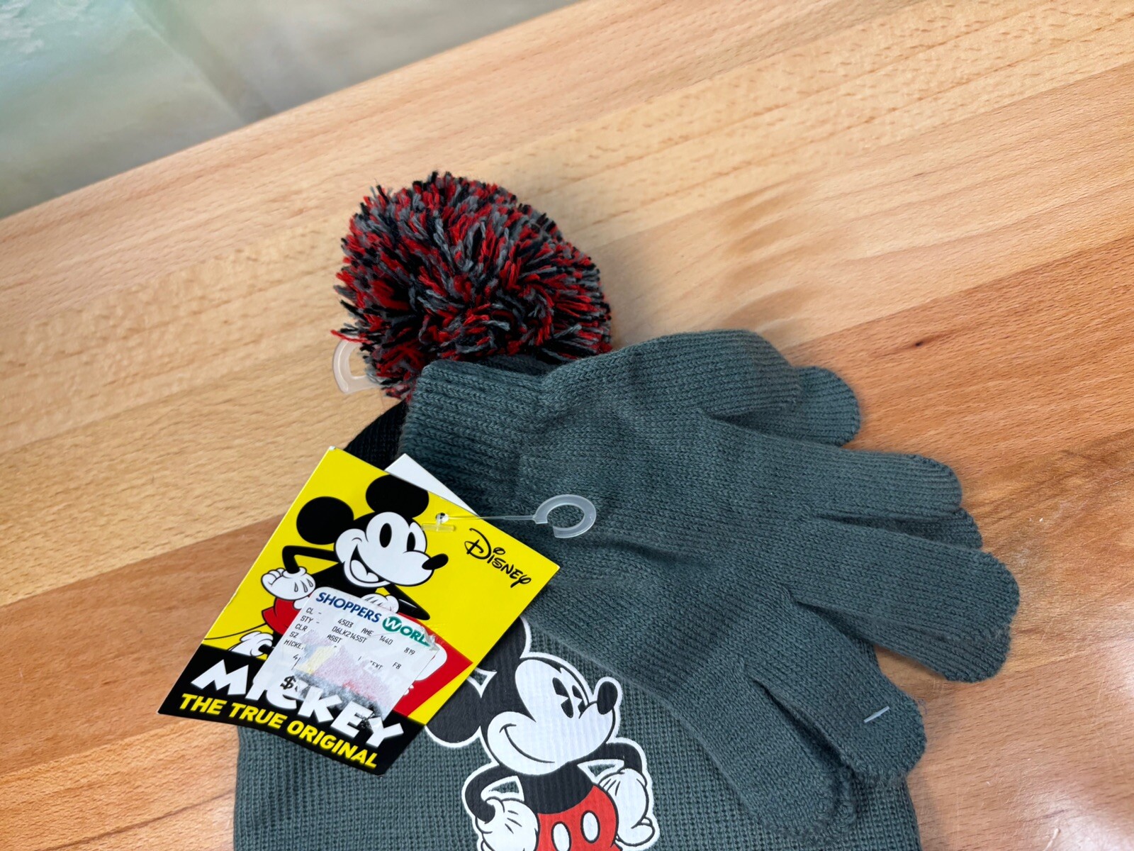 • Disney Mickey Mouse Beanie Hat Gloves Set W/Pom-Pom NWT