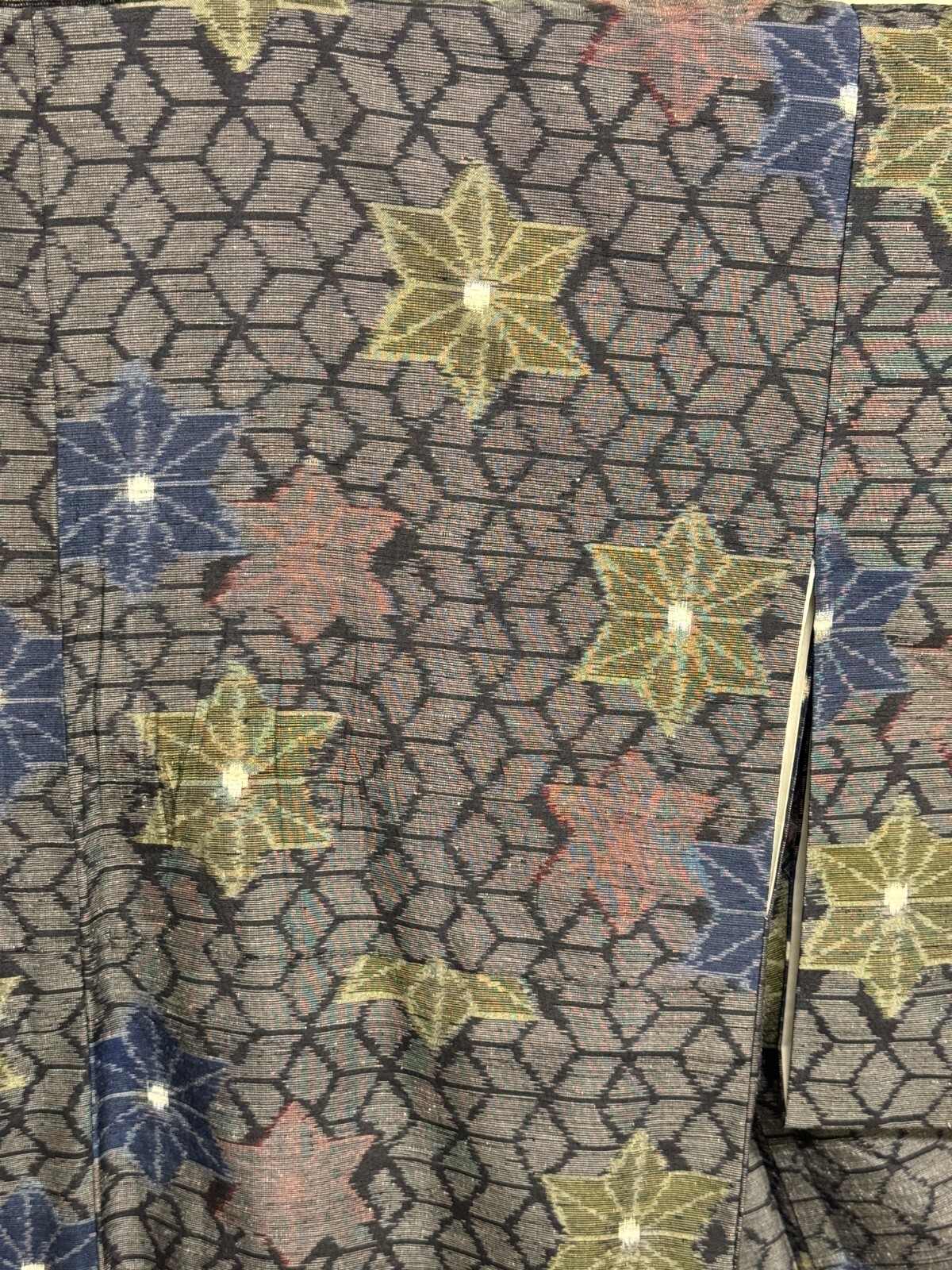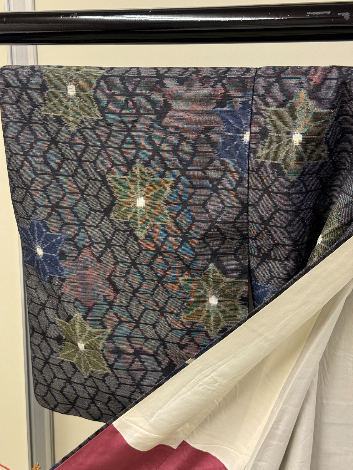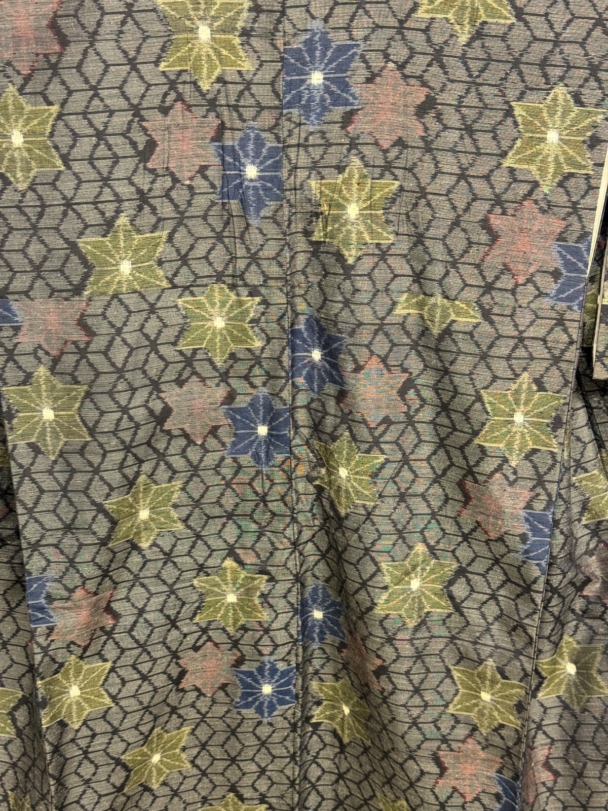 Japanese Vintage Kimono Pure Silk Black Blue Expensive Tsumugi Dirt Height 57in
